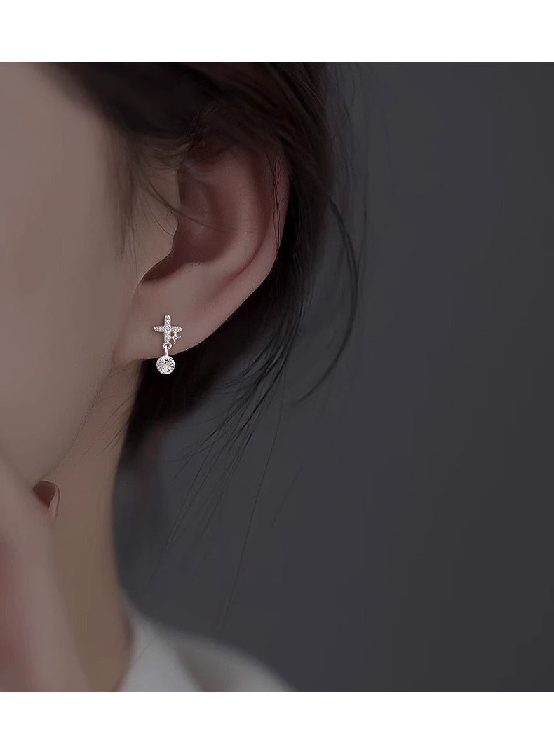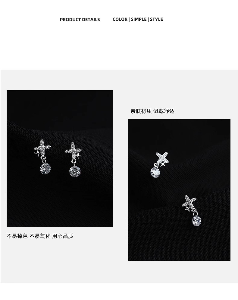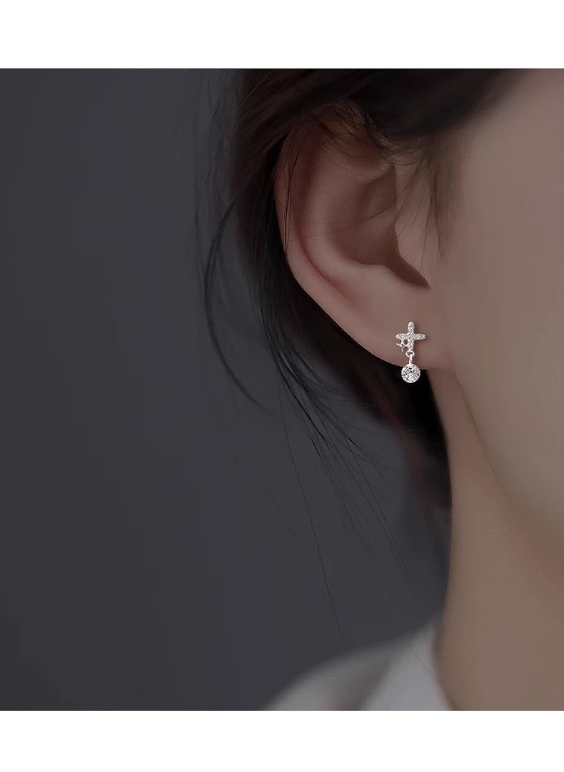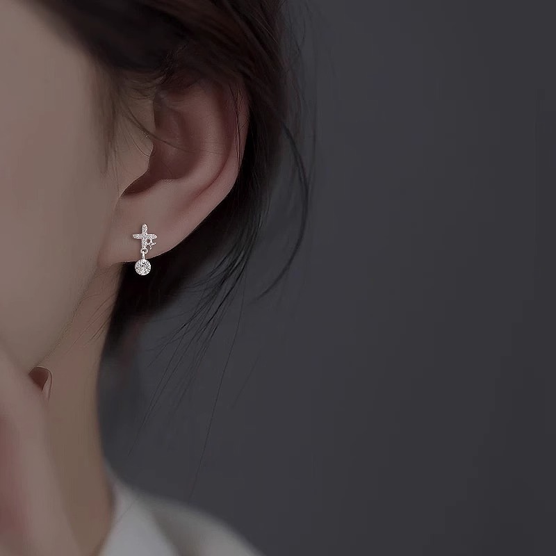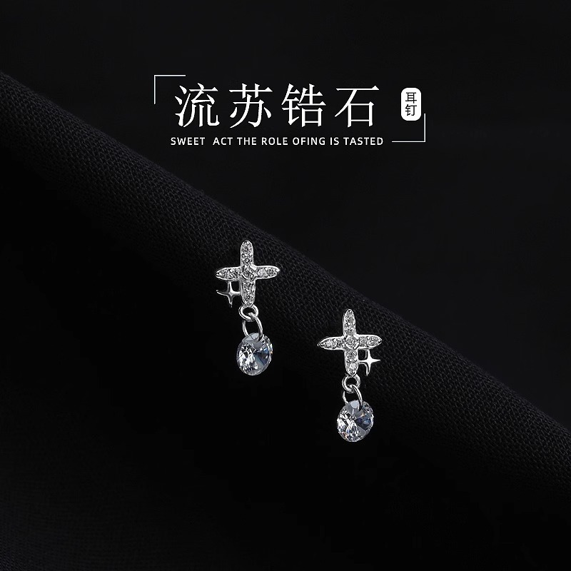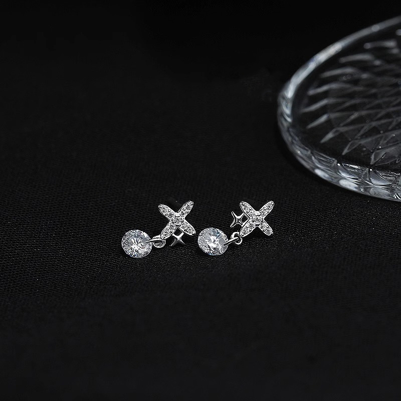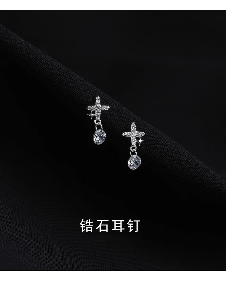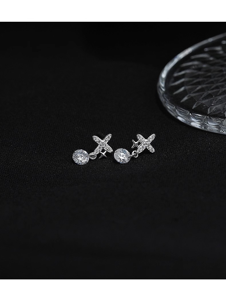 four eight-pointed stars ear studs (copper plated white gold)