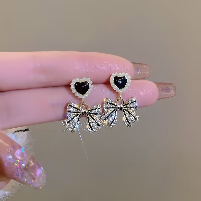 love pearl bow stud earrings