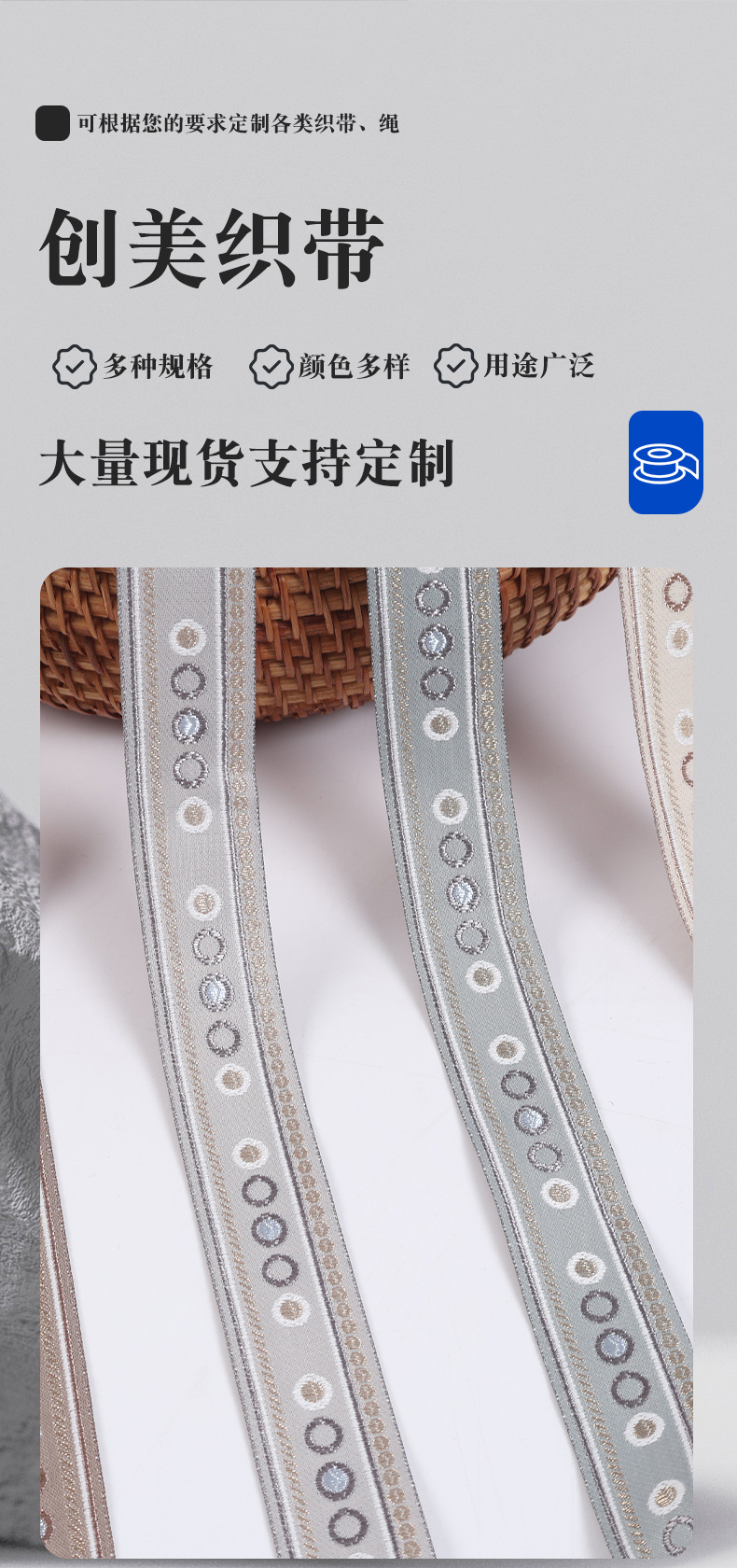 factory direct supply round jacquard net tape clothing bag decoration textile accessories jacquard ribbon multi-color available in stock