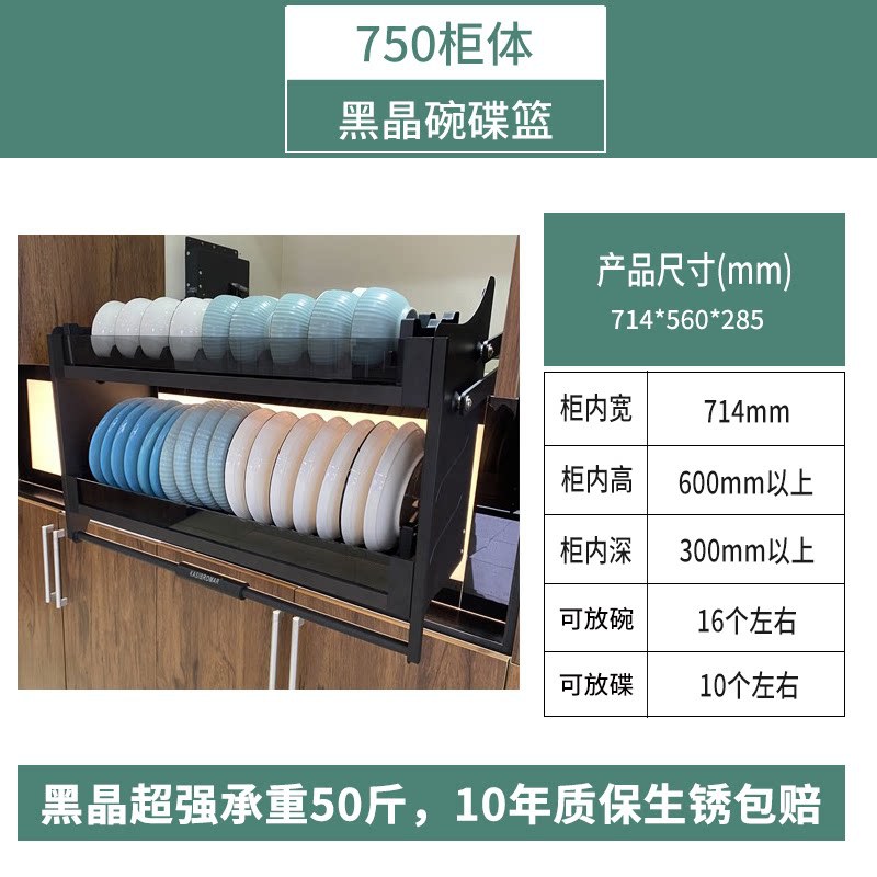 explosion-proof black crystal dish basket for 750mm cabinets (ultra-strong load-bearing capacity: 25 kg)