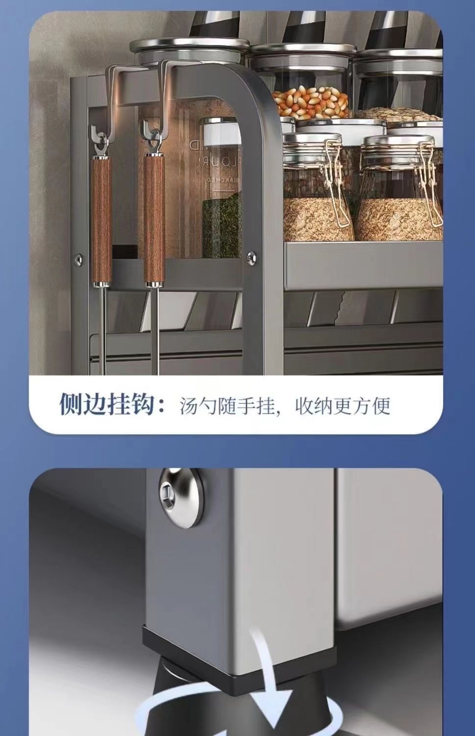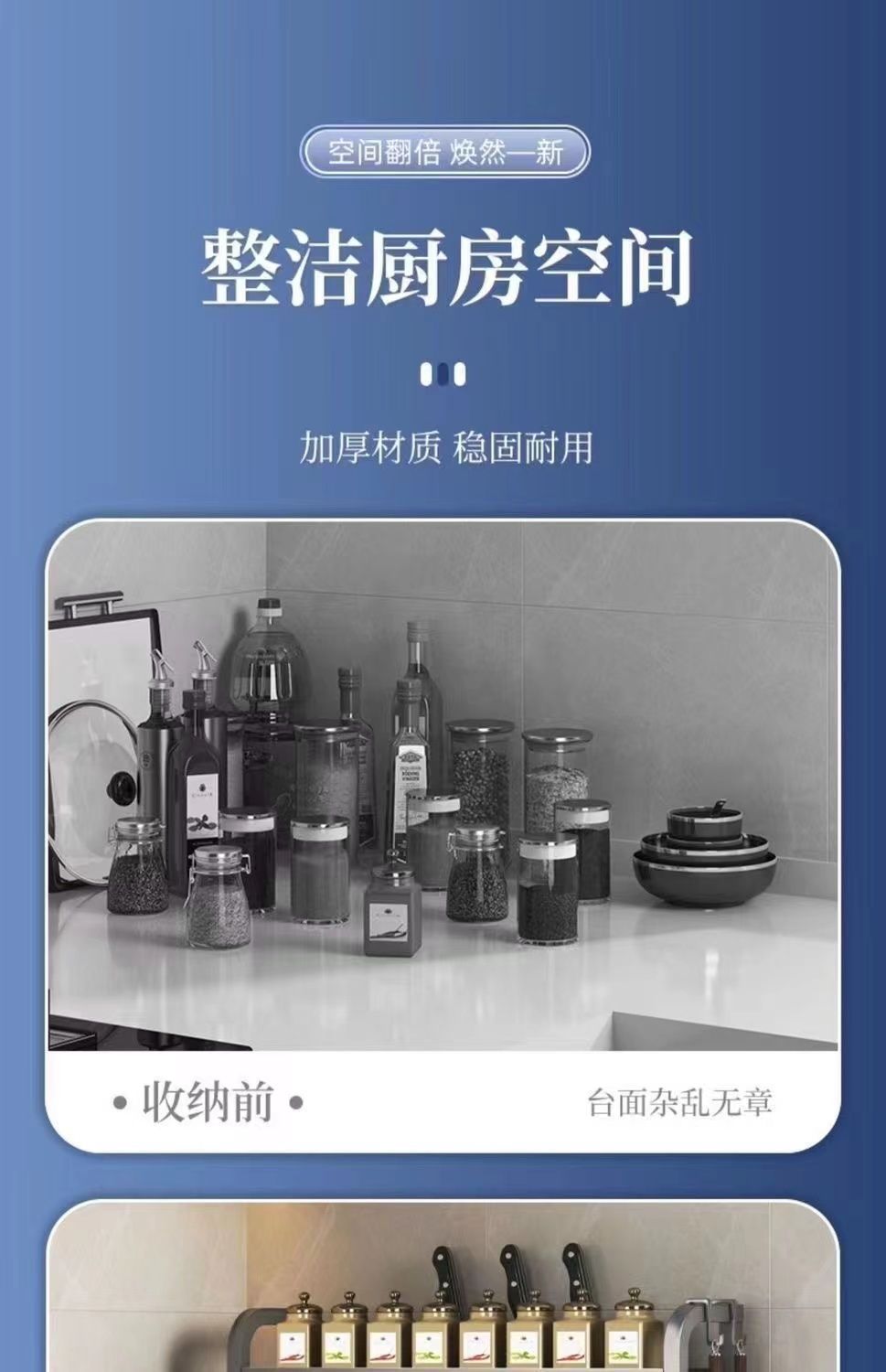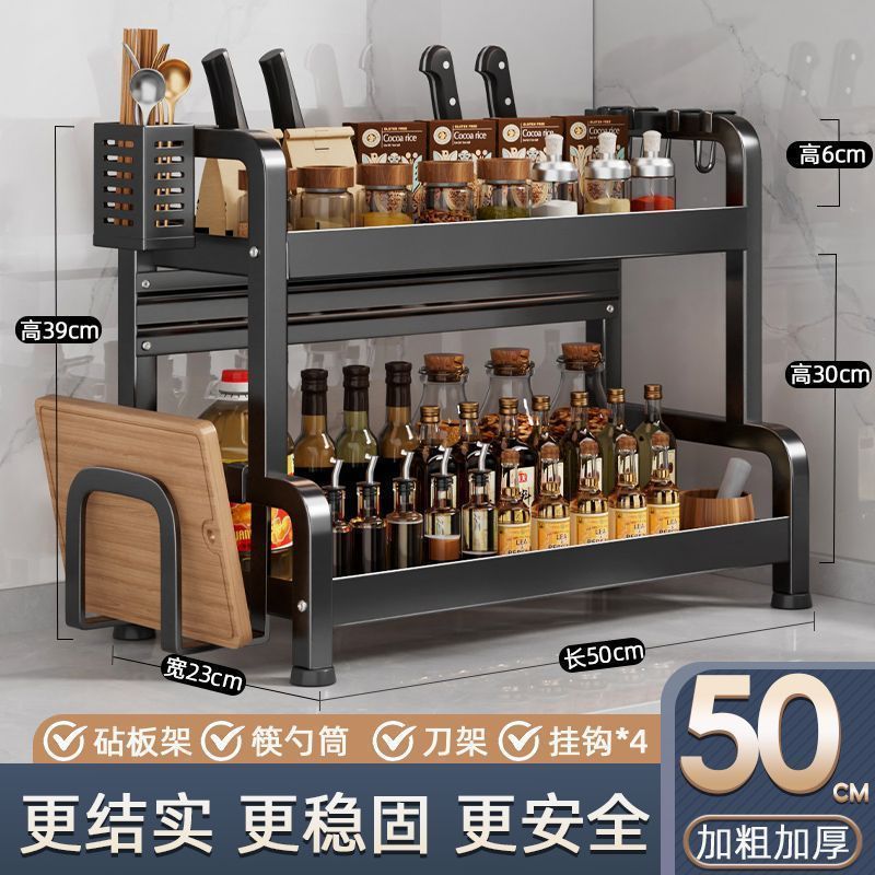 two-layer 50cm with knife rest + hook + chopsticks holder + chopping board rack