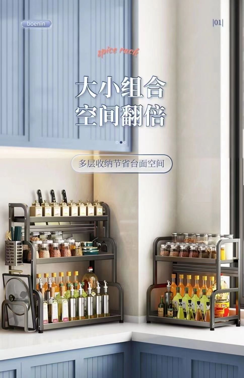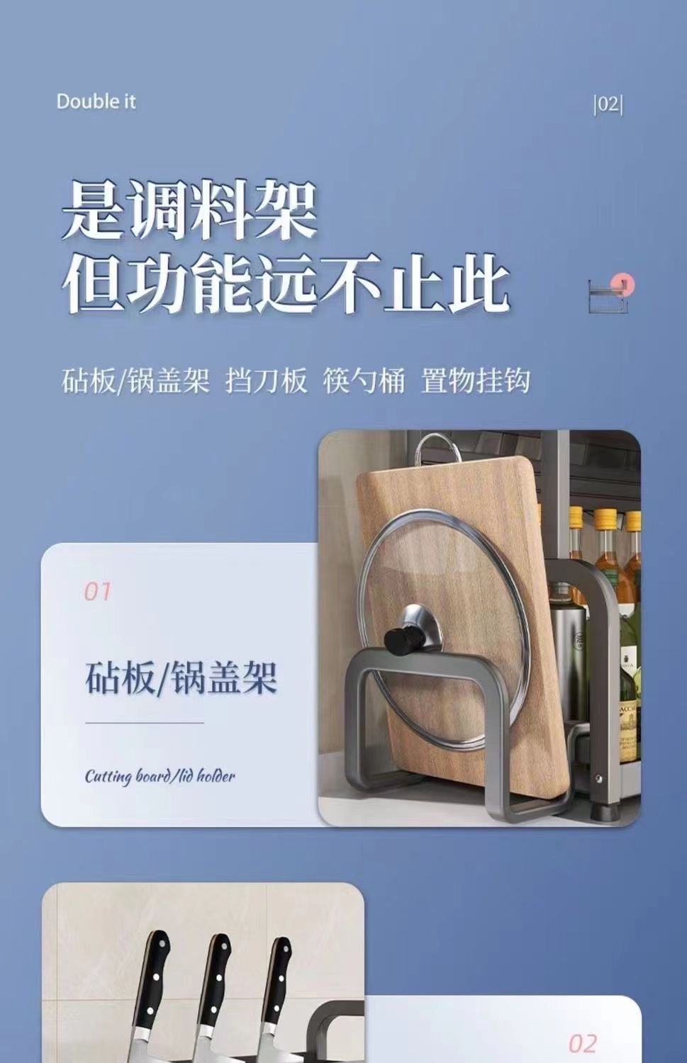 two-layer 40cm with knife rest + hook + chopsticks holder + chopping board rack