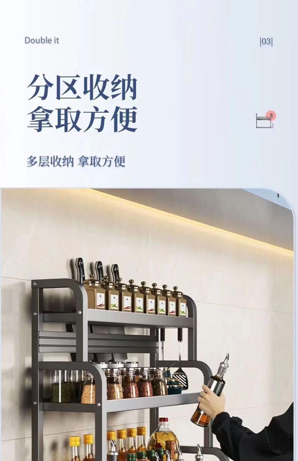 three-layer 50cm with knife rest + hook + chopsticks holder + chopping board rack