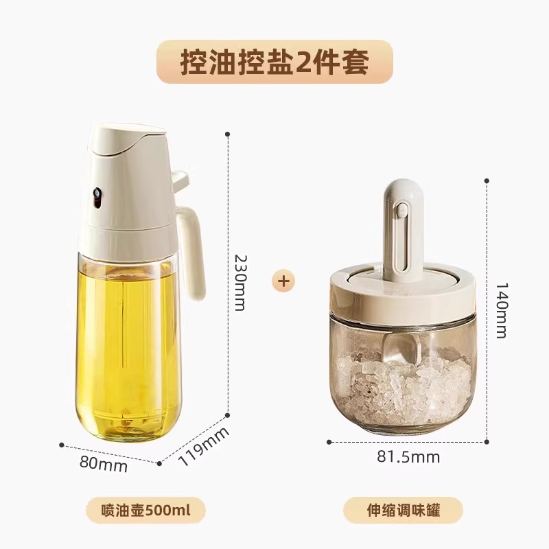 [2-piece set of oil control and salt control] 500ml oil pot + telescopic seasoning containers