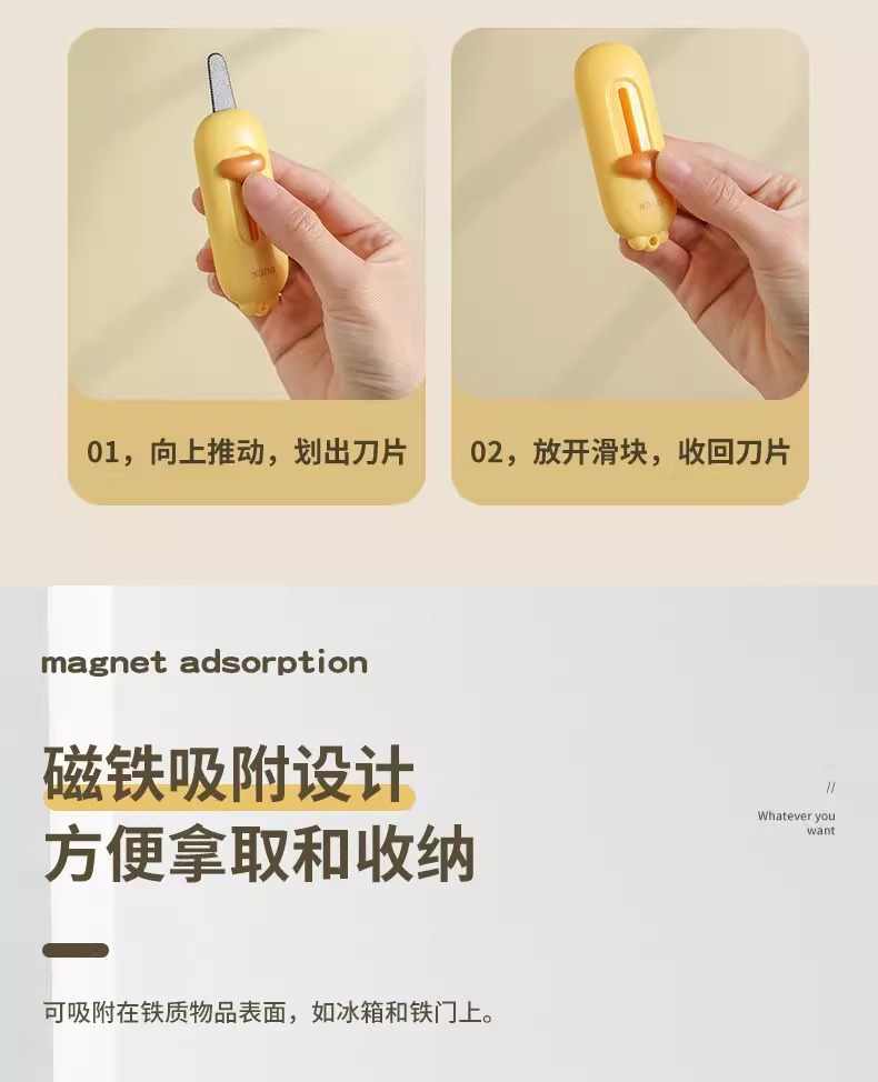 small yellow duck unpacking knife [1 pack] automatic rebound | magnetic adsorption