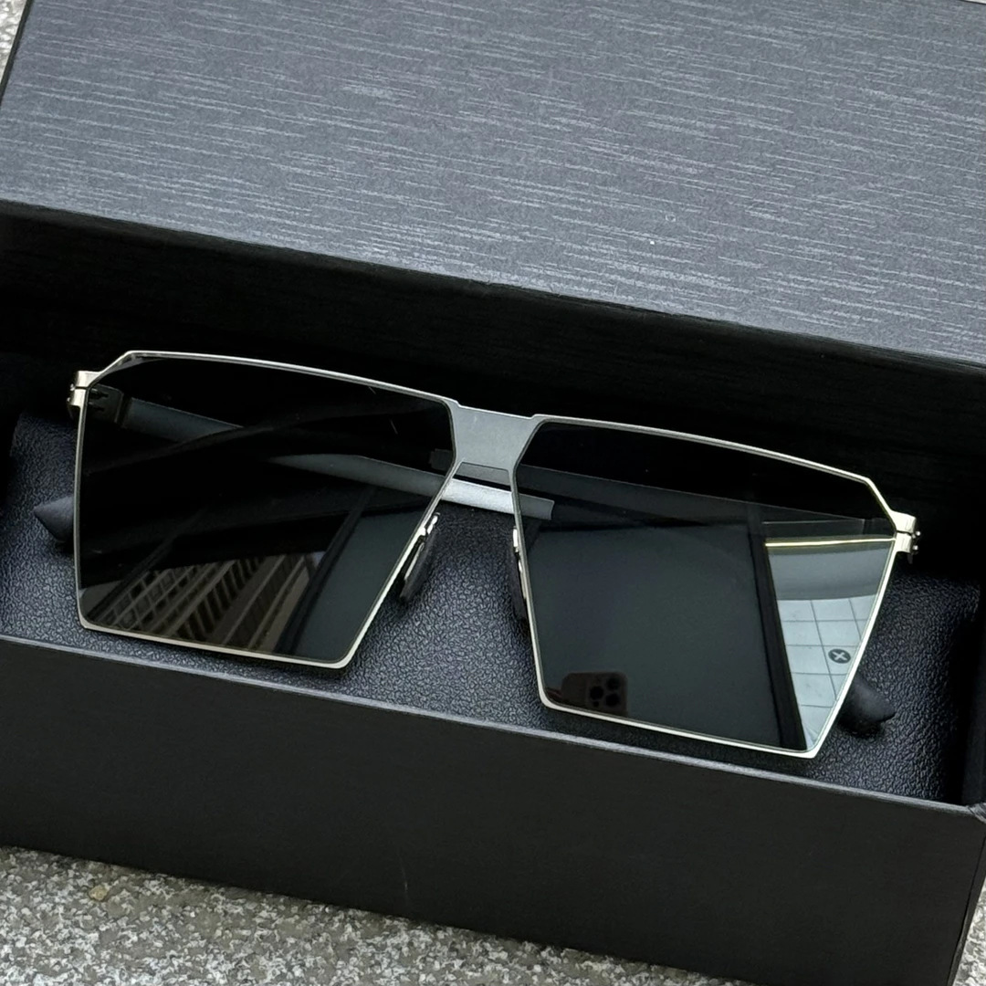 silver frame black and grey lens