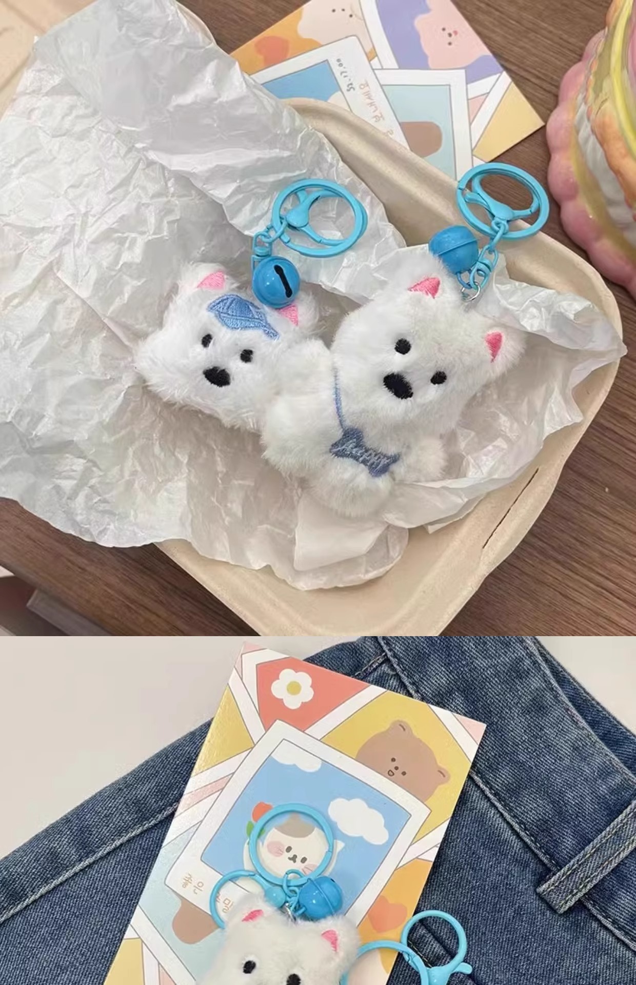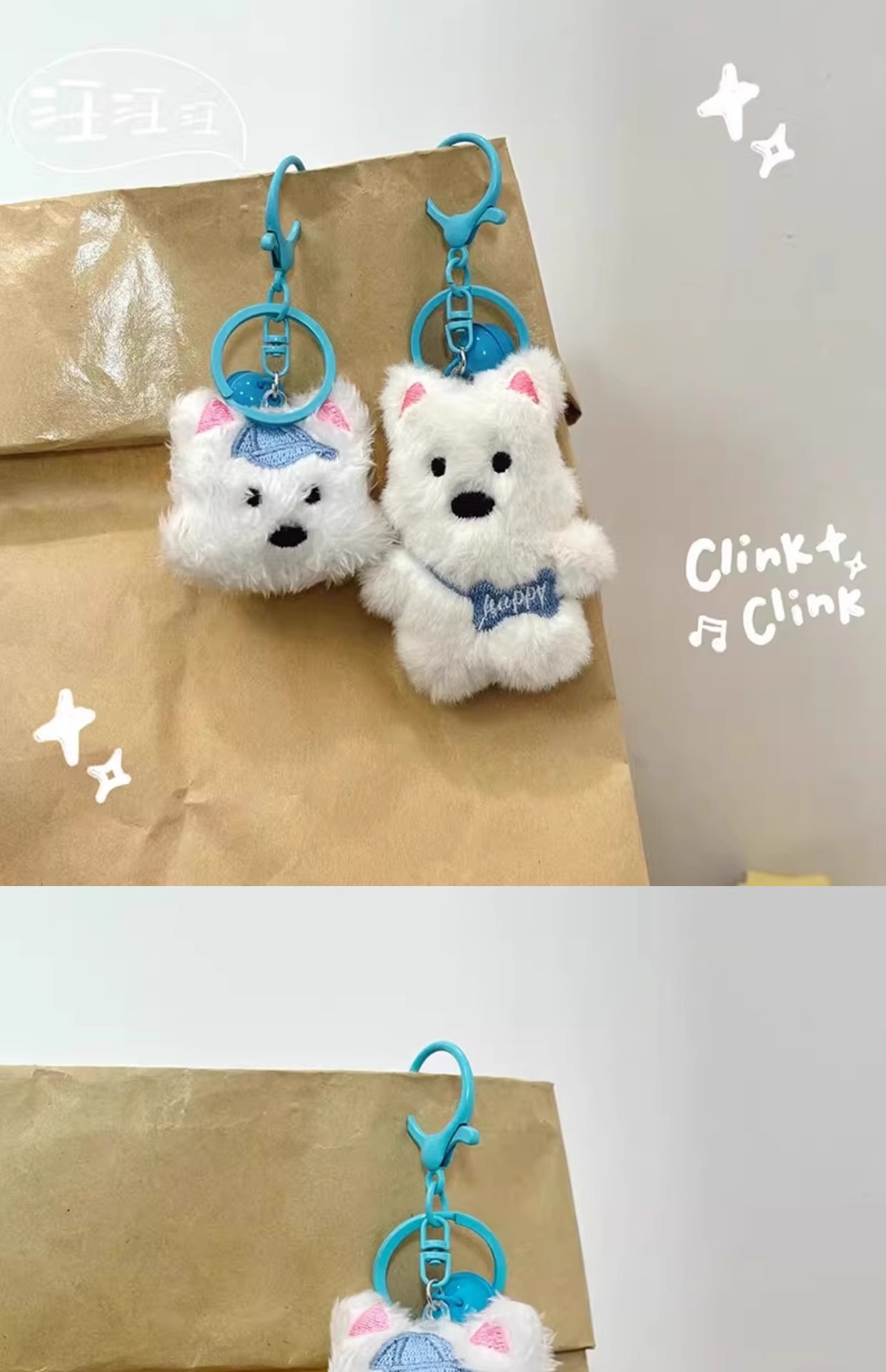 west highland keychain-blue hat puppy-1 (nude without pink listing)