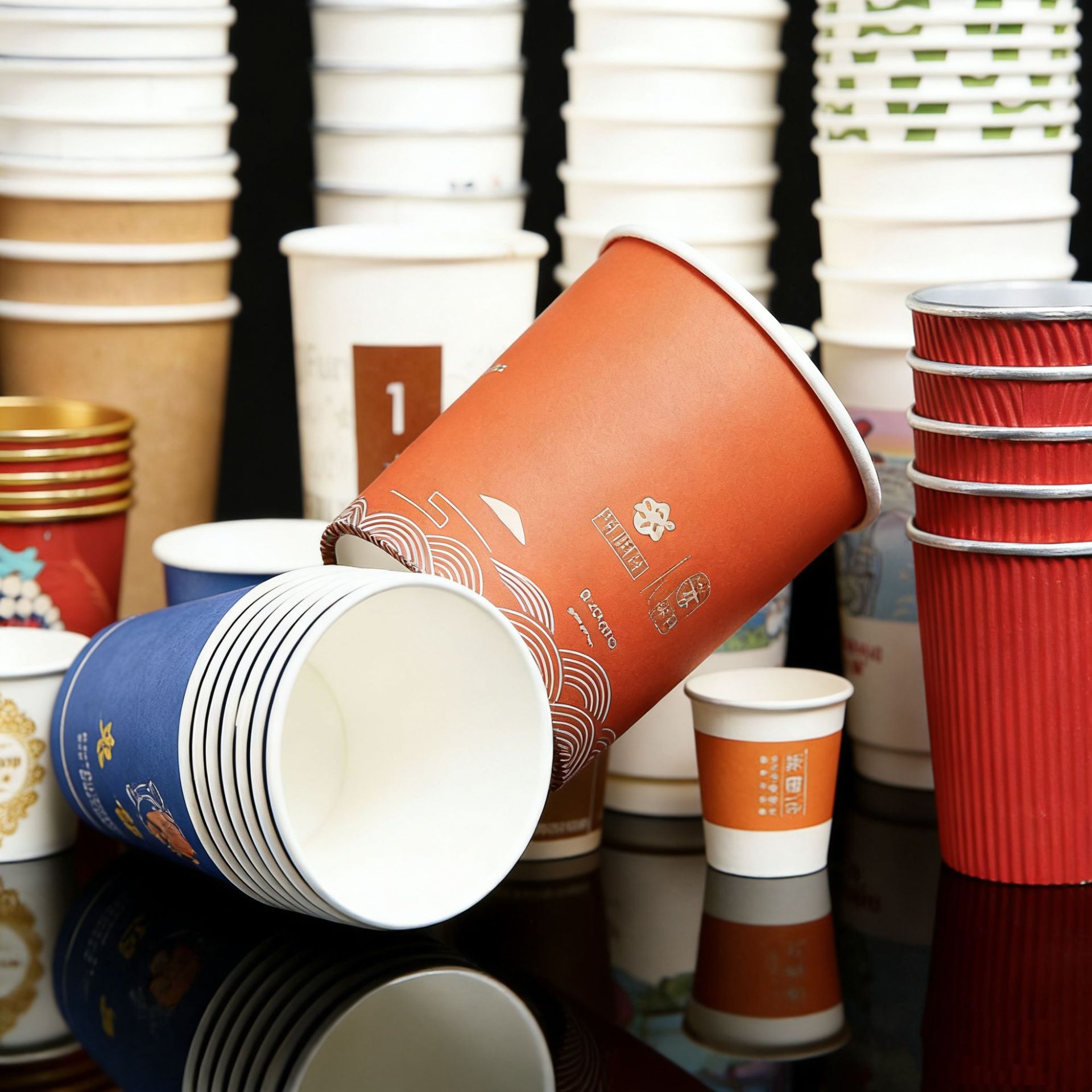 colorful; 9 oz, minimum order of 5,000.