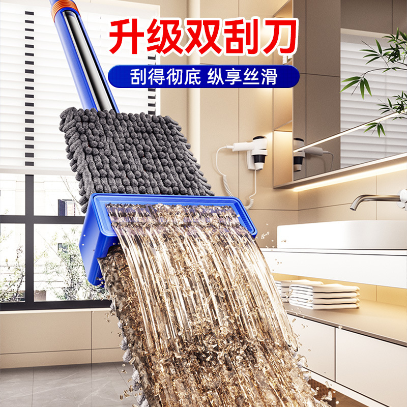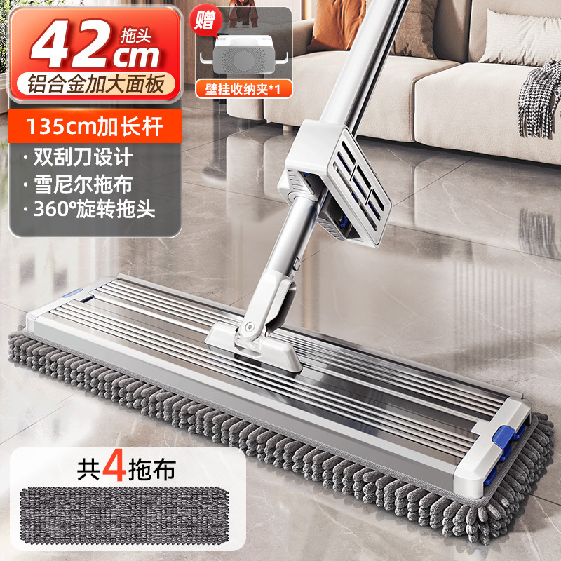42cm thick aluminum panel [4 pieces in total newly upgraded chenille mop] white and blue + mop rack