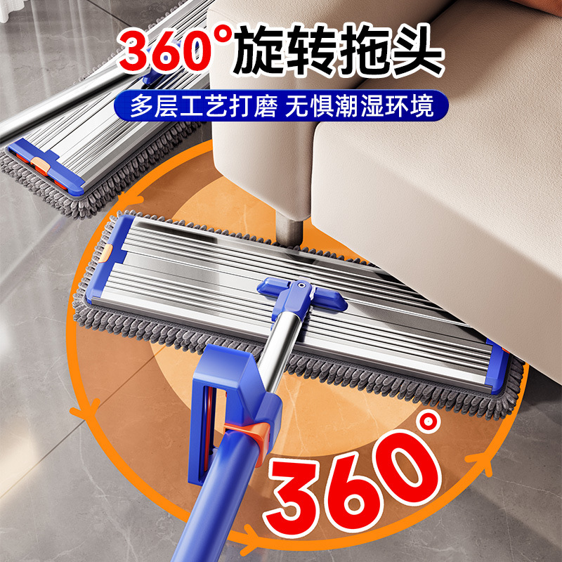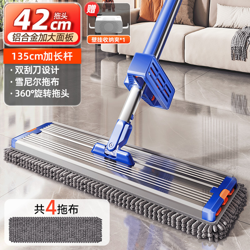 42cm thick aluminum panel [4 pieces in total newly upgraded chenille mop] blue orange + mop rack