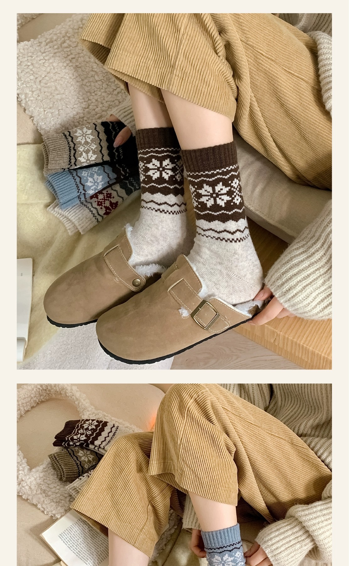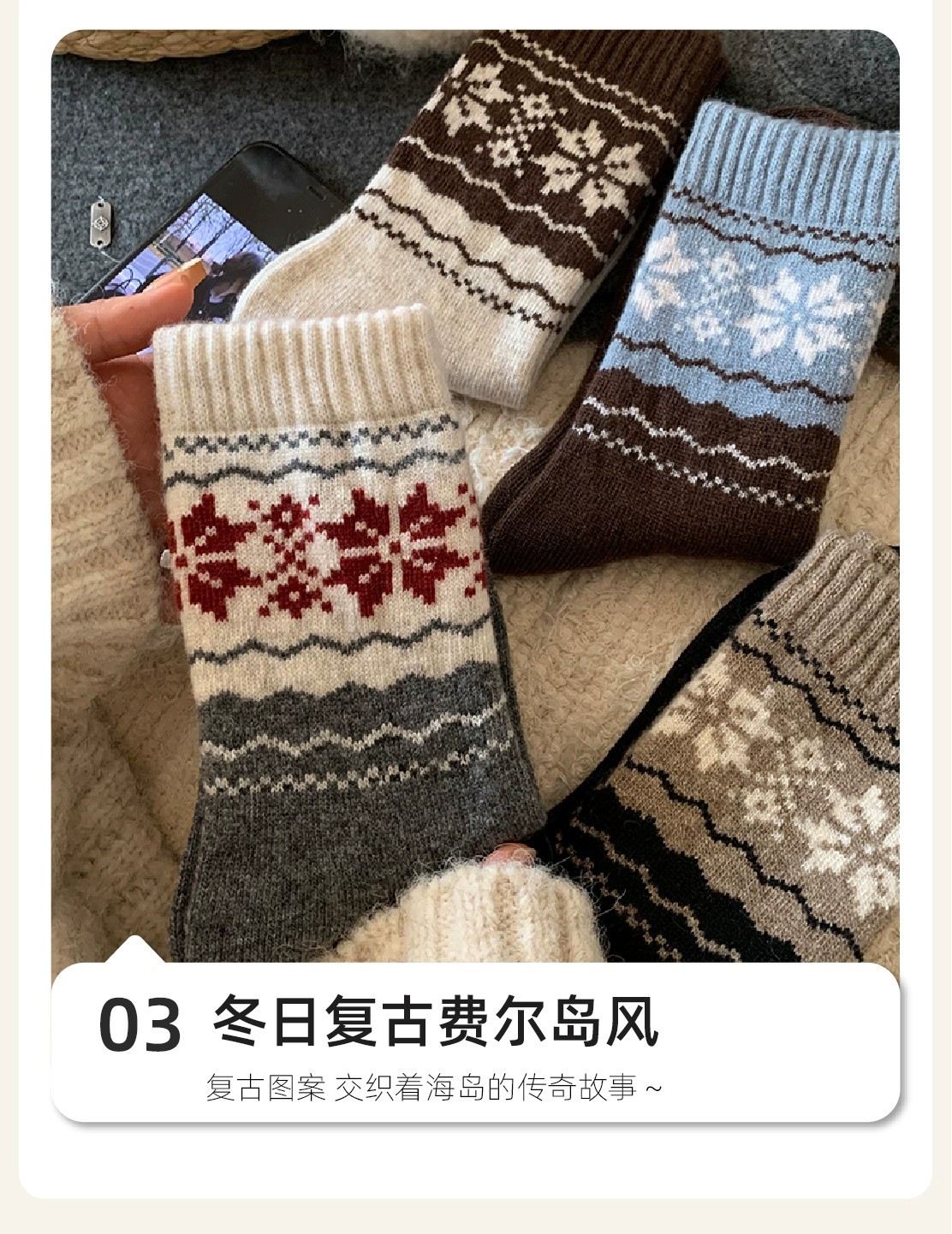 fairisland wool socks-contrast color