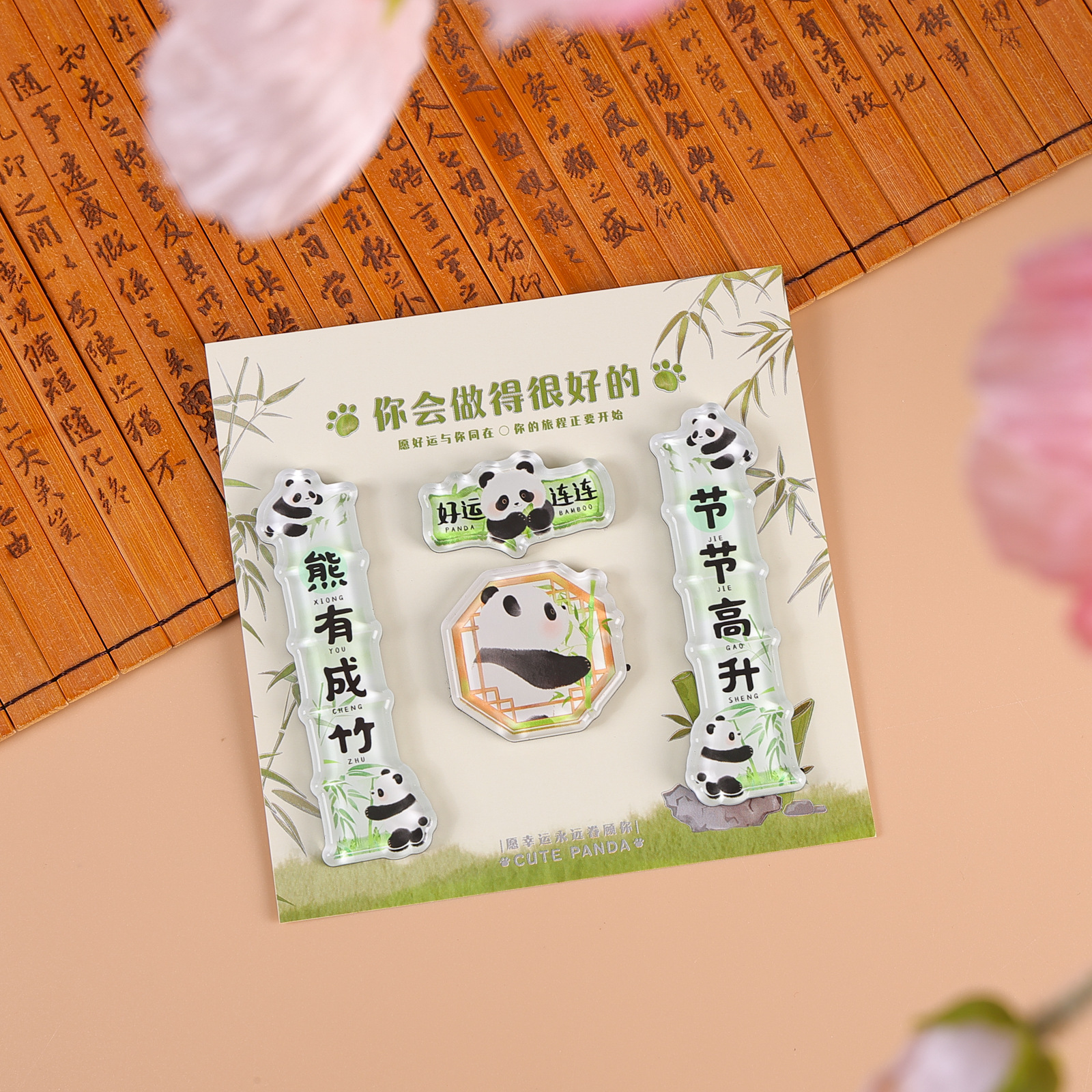acrylic small antithetical couplet-panda bamboo smooth sailing