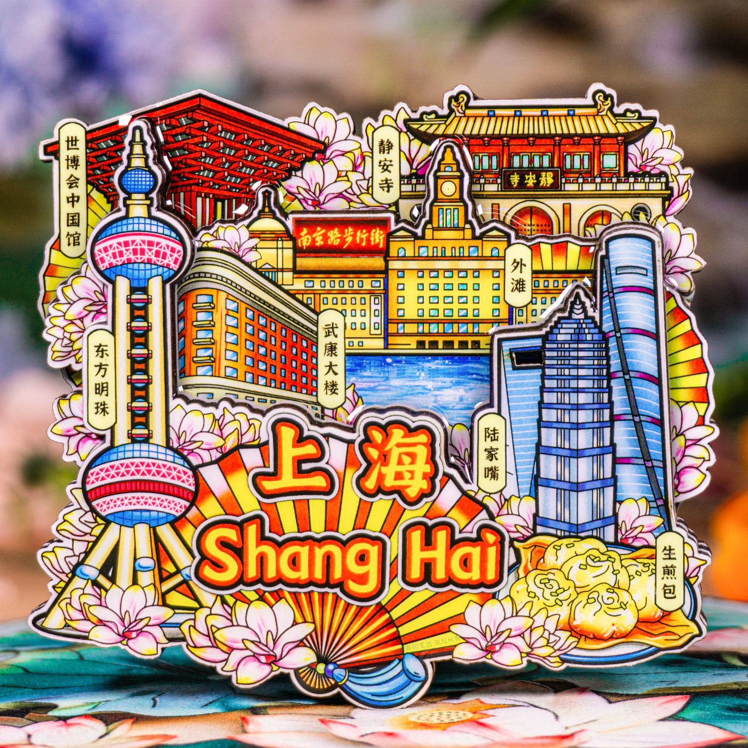 shanghai gift fan, 3d stereoscopic wooden, thickened and oversized style