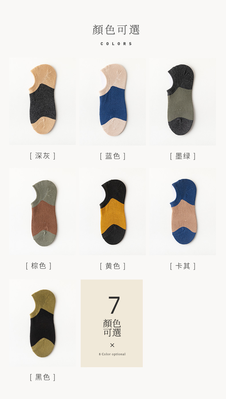 item no.: men's cotton color block invisible socks