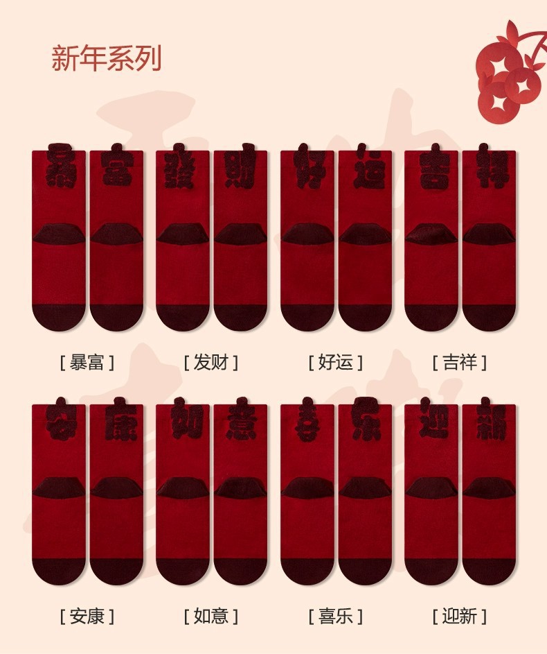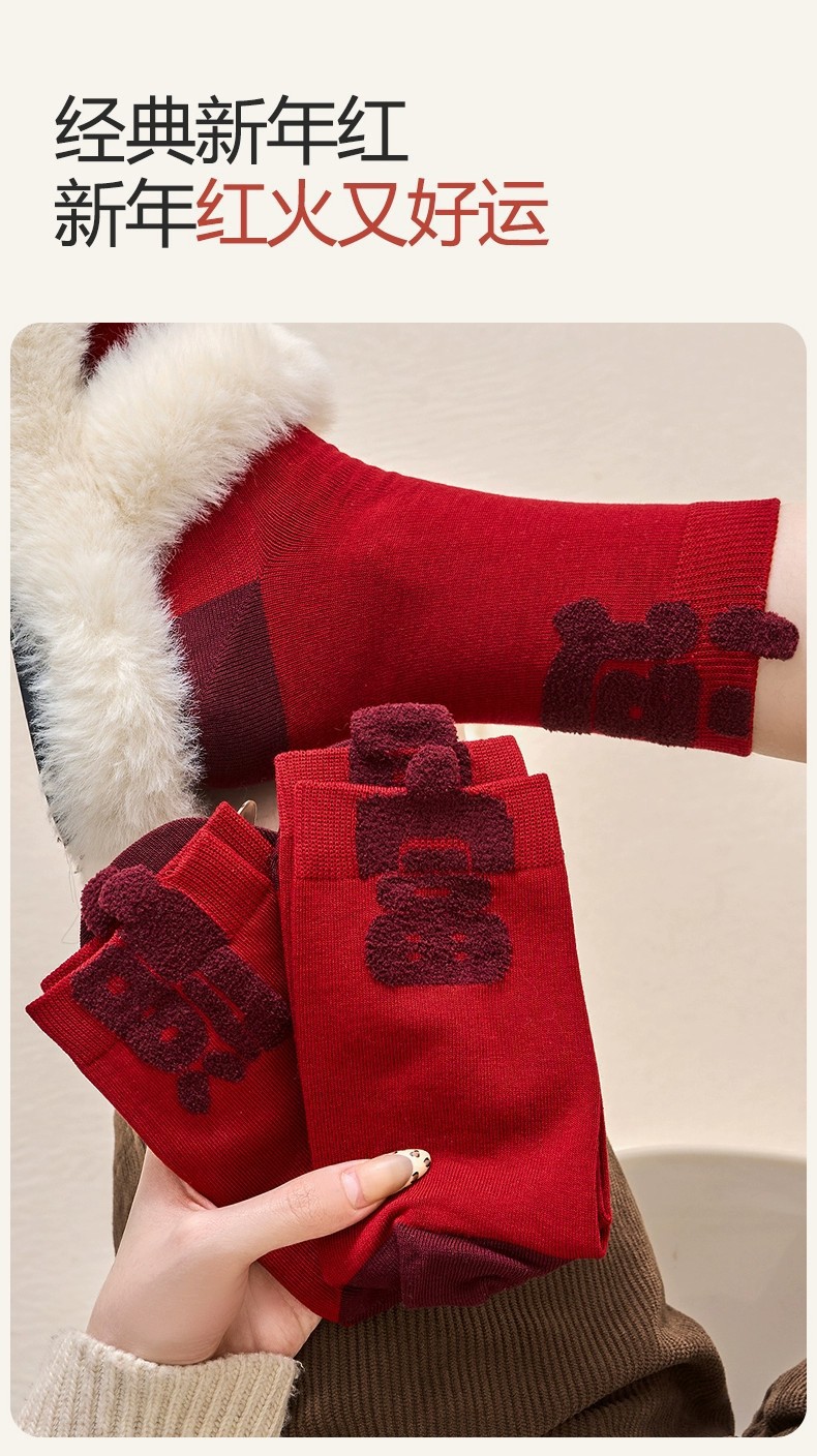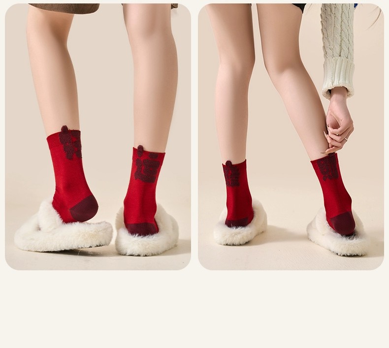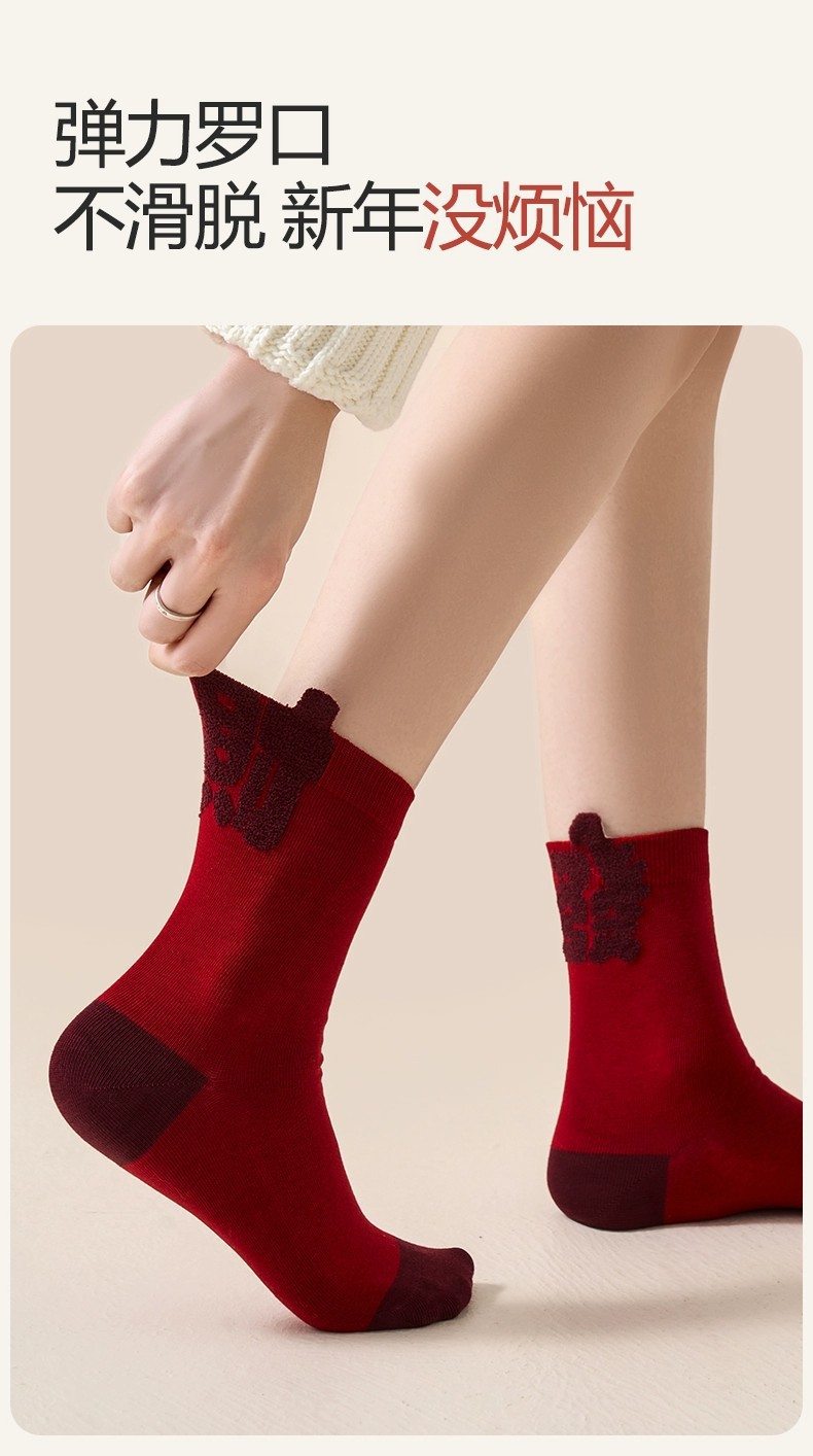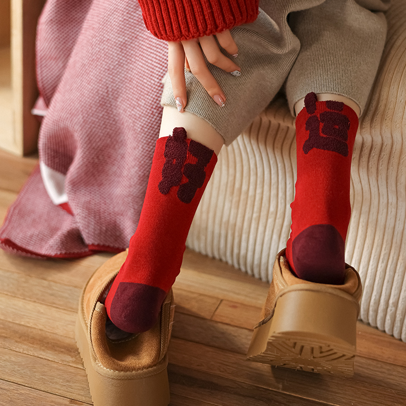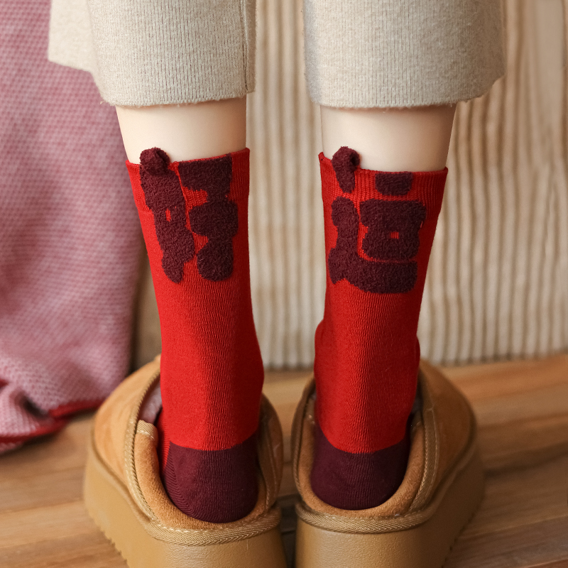 item no.: new year red socks-stereoscopic text