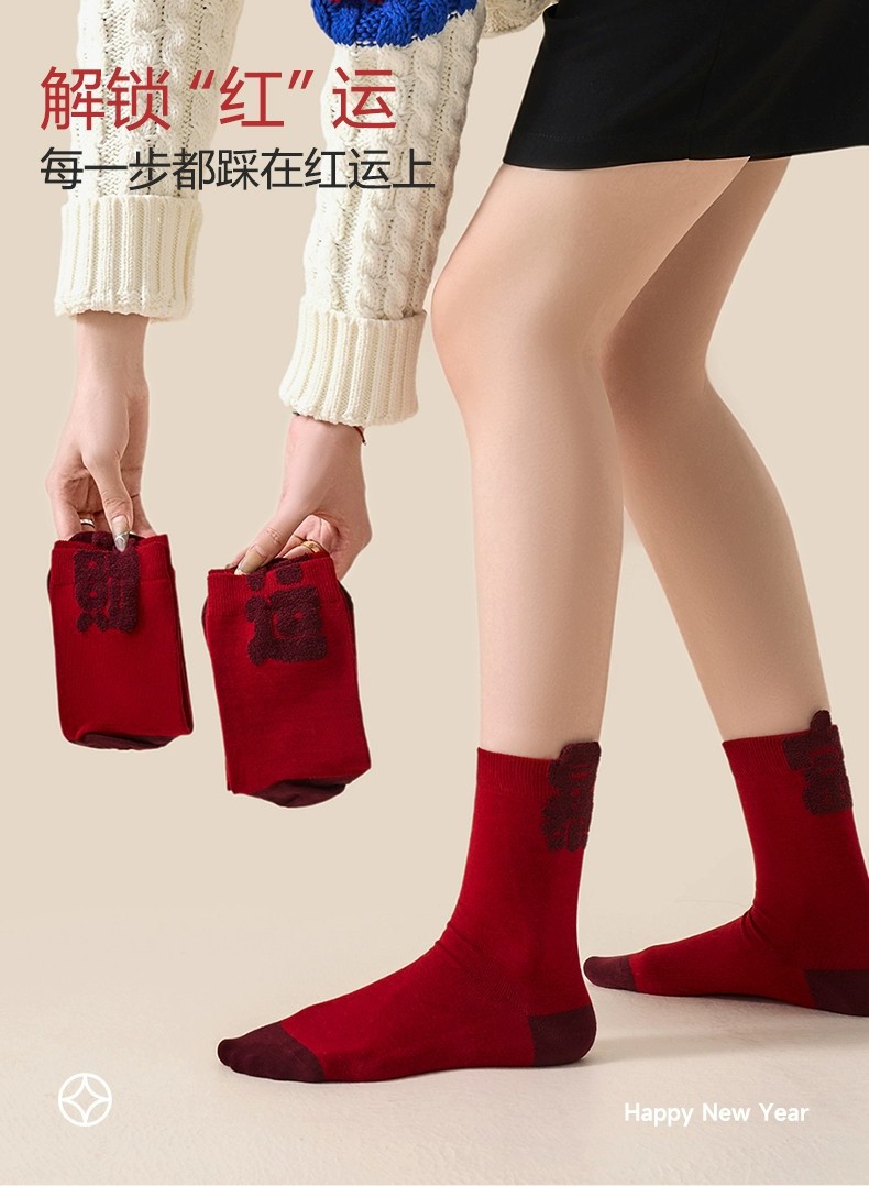 new year red socks-stereoscopic text