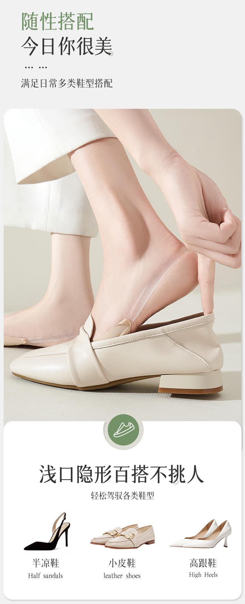 function: invisible, non-slip, sweat-absorbent, anti-friction