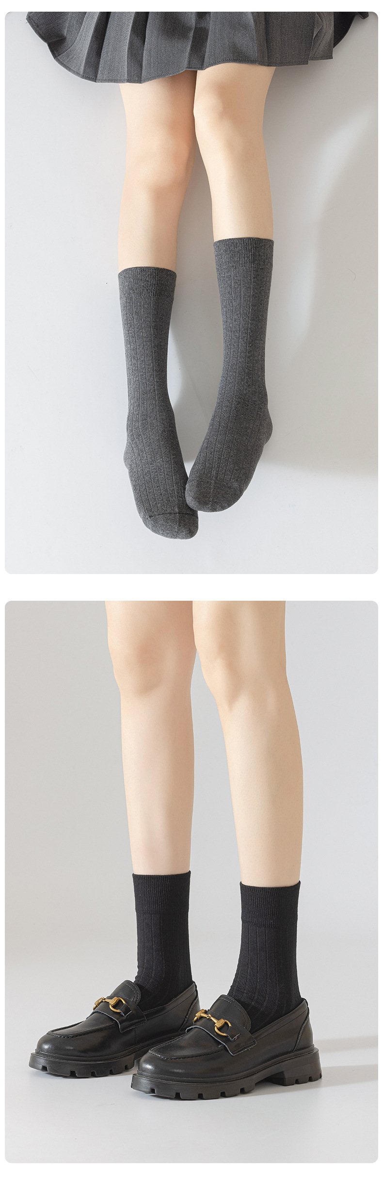 color: knee-high white, knee-high black, light gray mid-calf boots, mid-calf dark gray