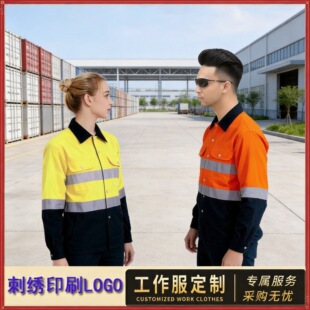processing pure cotton construction and mining workers workwear long sleeve reflective shirt night construction autumn and summer work clothes customization