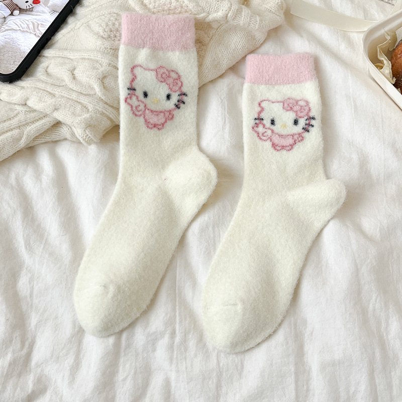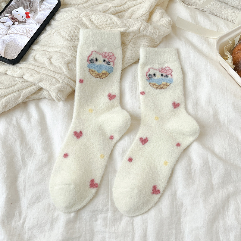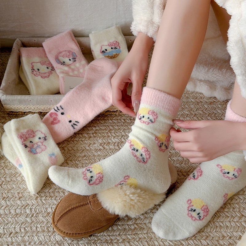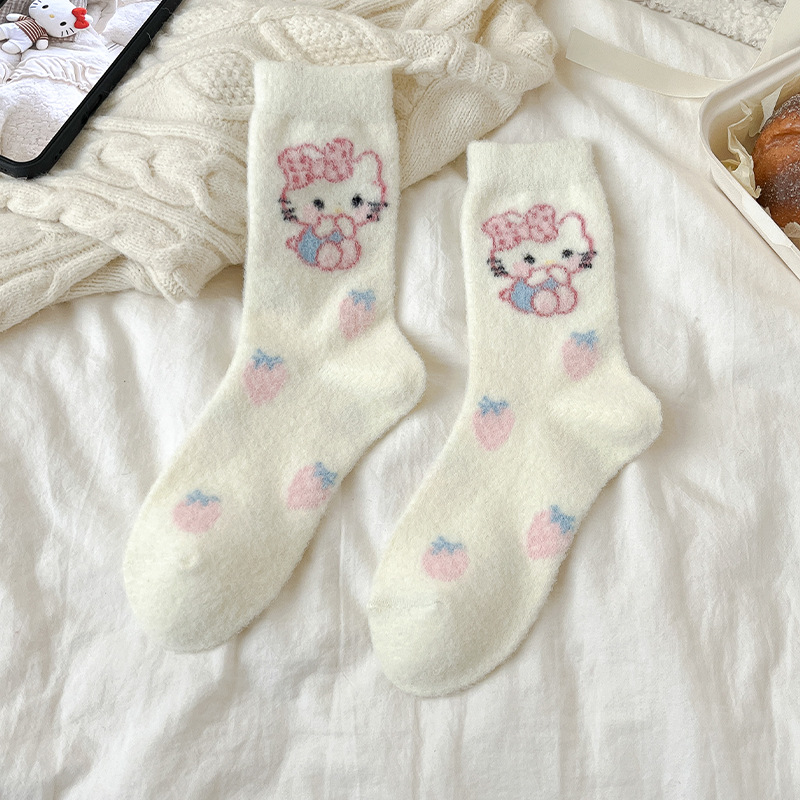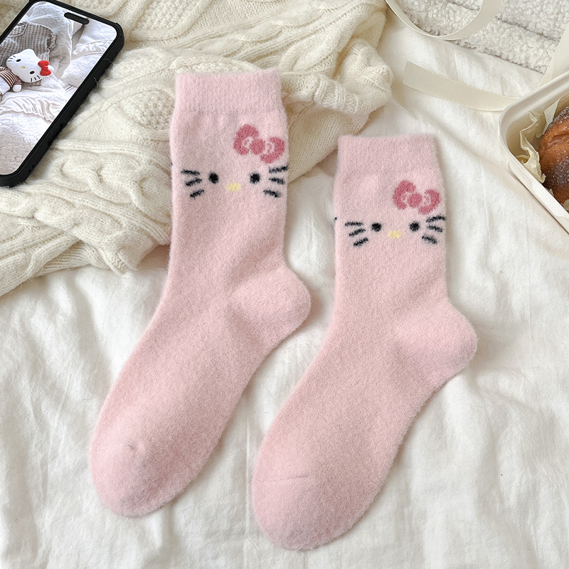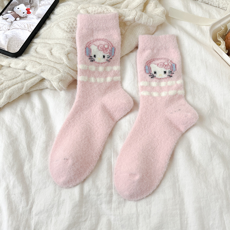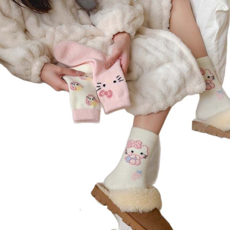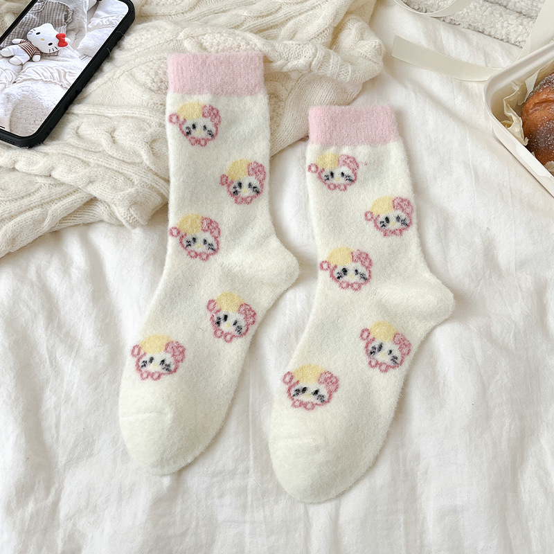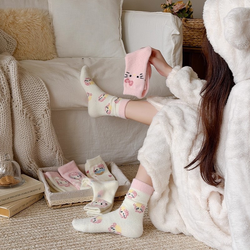 autumn and winter thick warm home floor socks plush cute girl sleeping socks cartoon pink tube socks children
