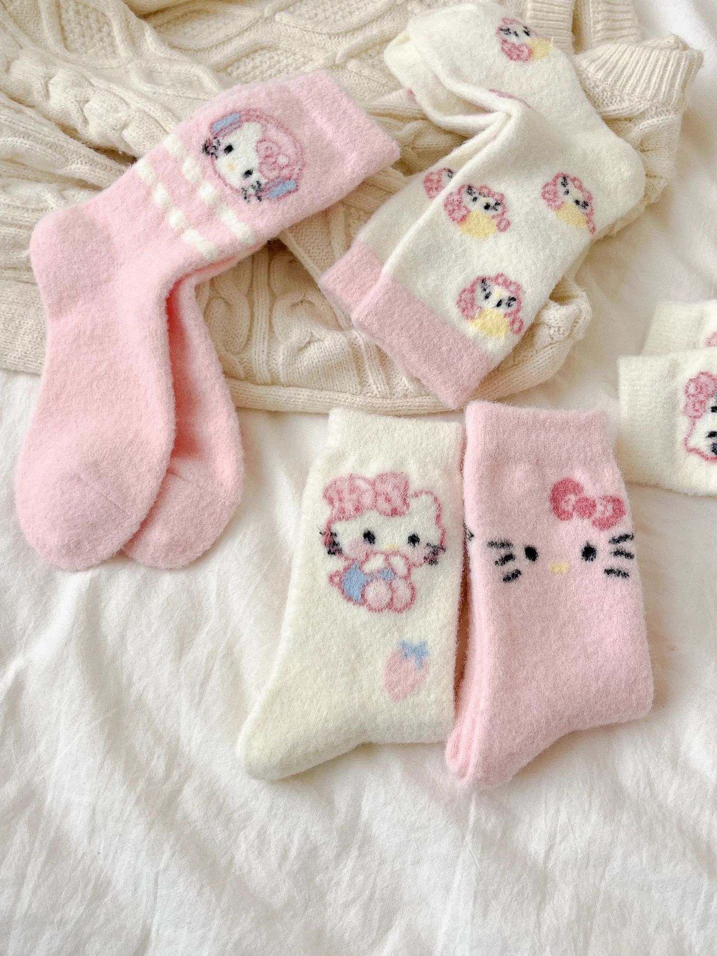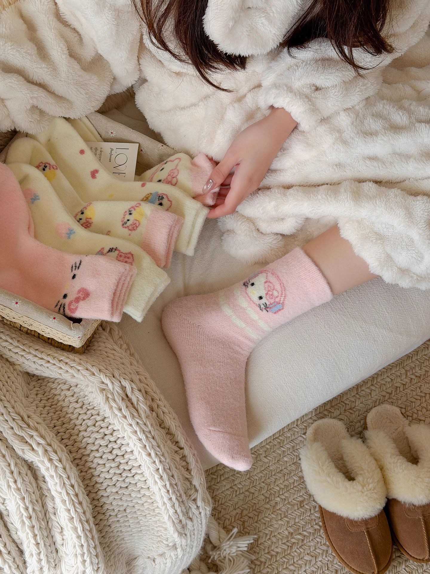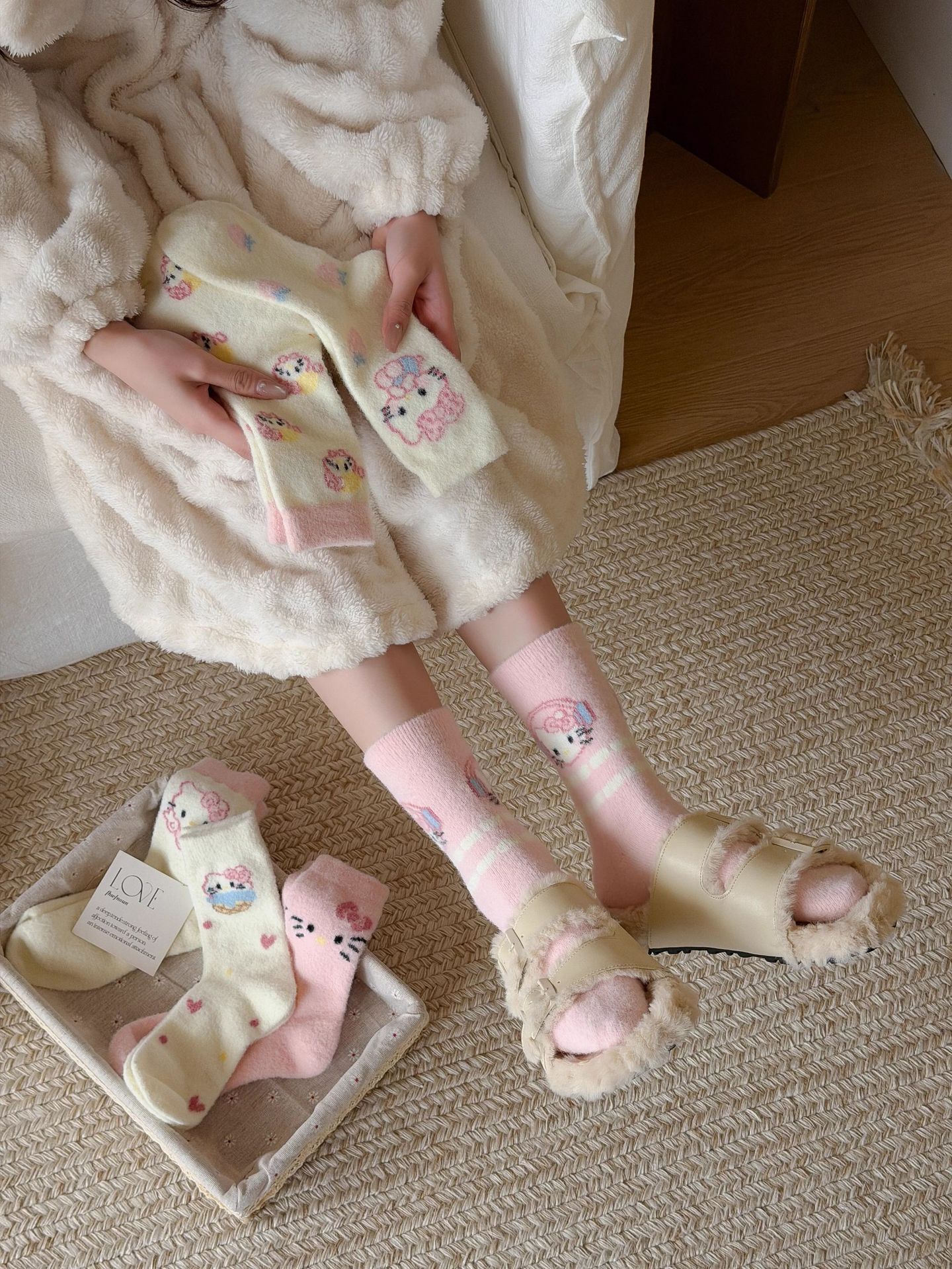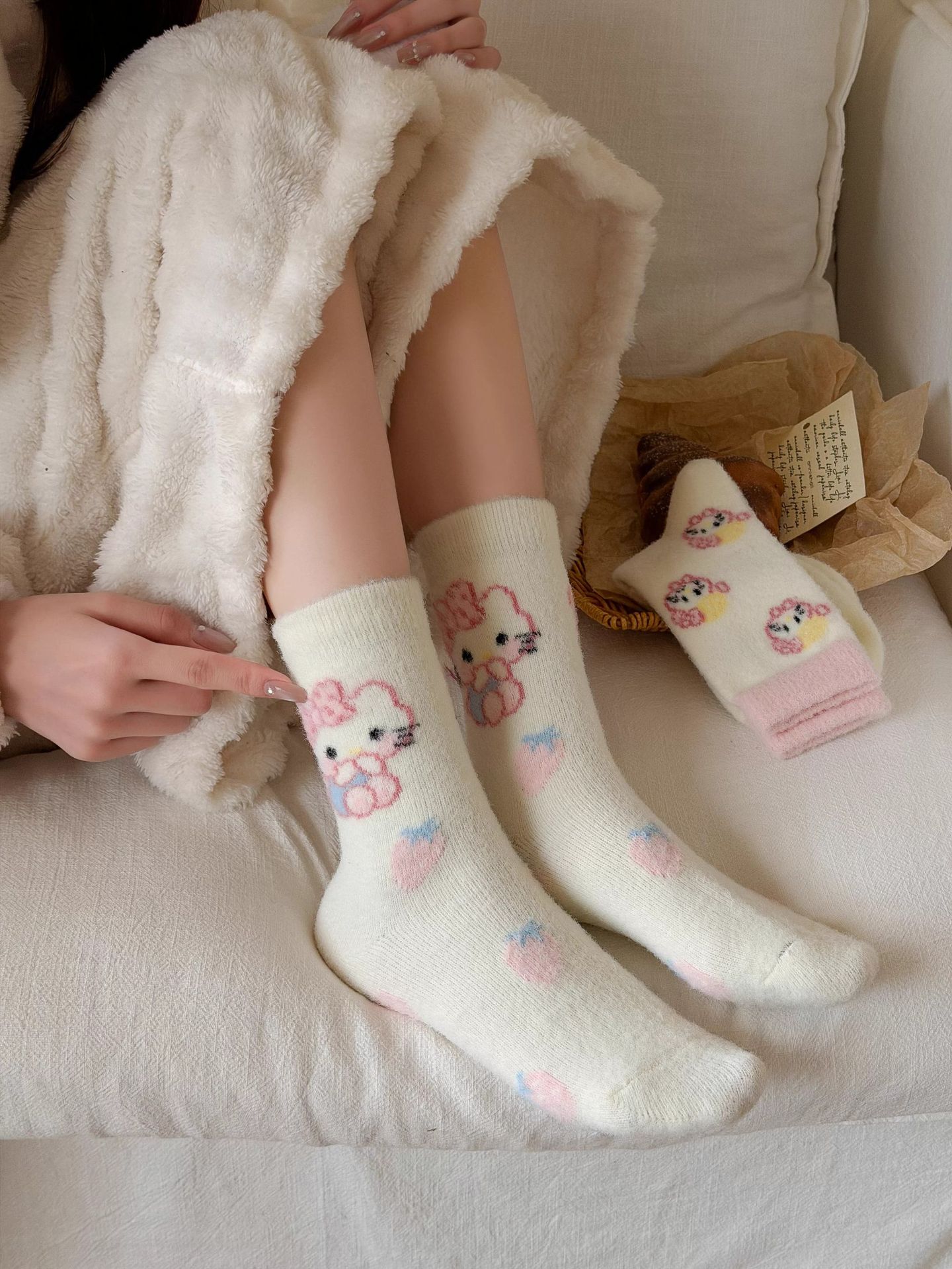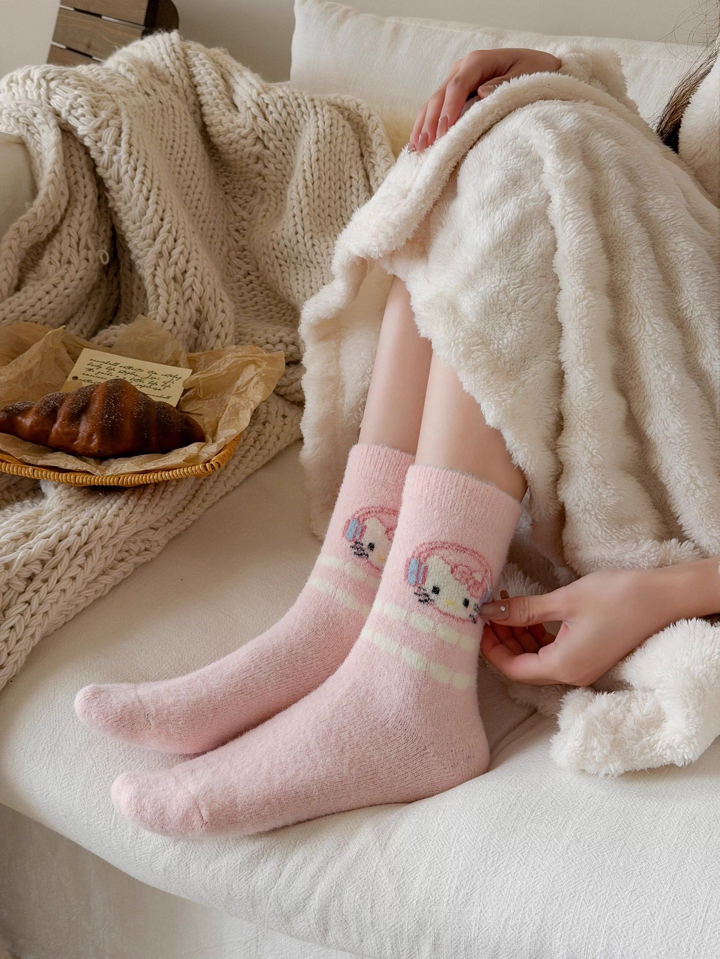 autumn and winter thick warm home floor socks plush cute girl sleeping socks cartoon pink tube socks children