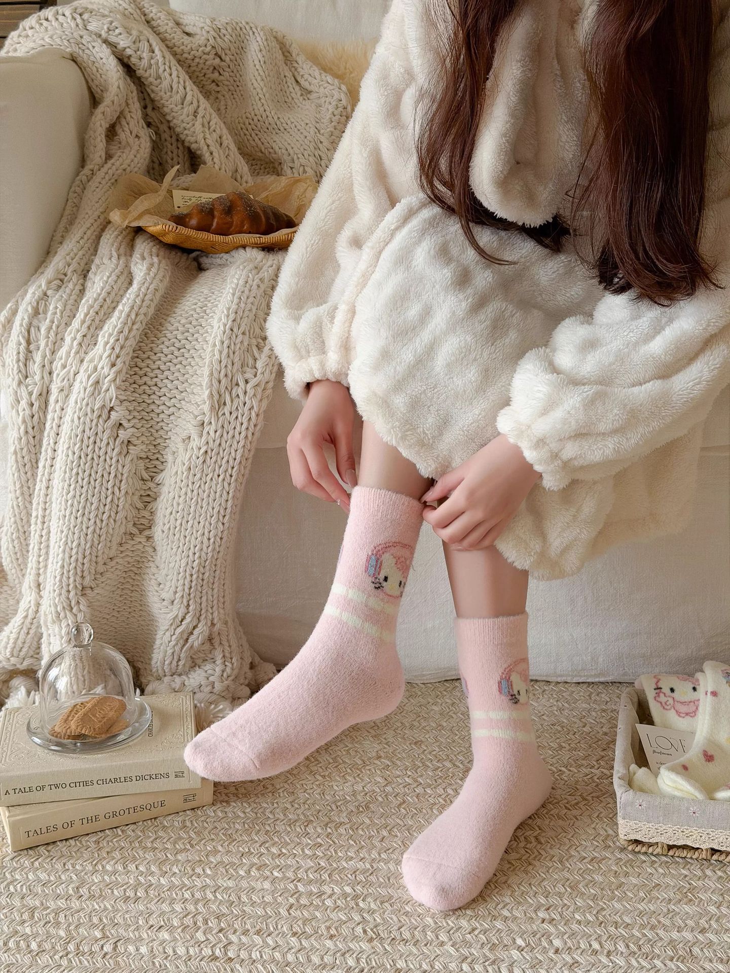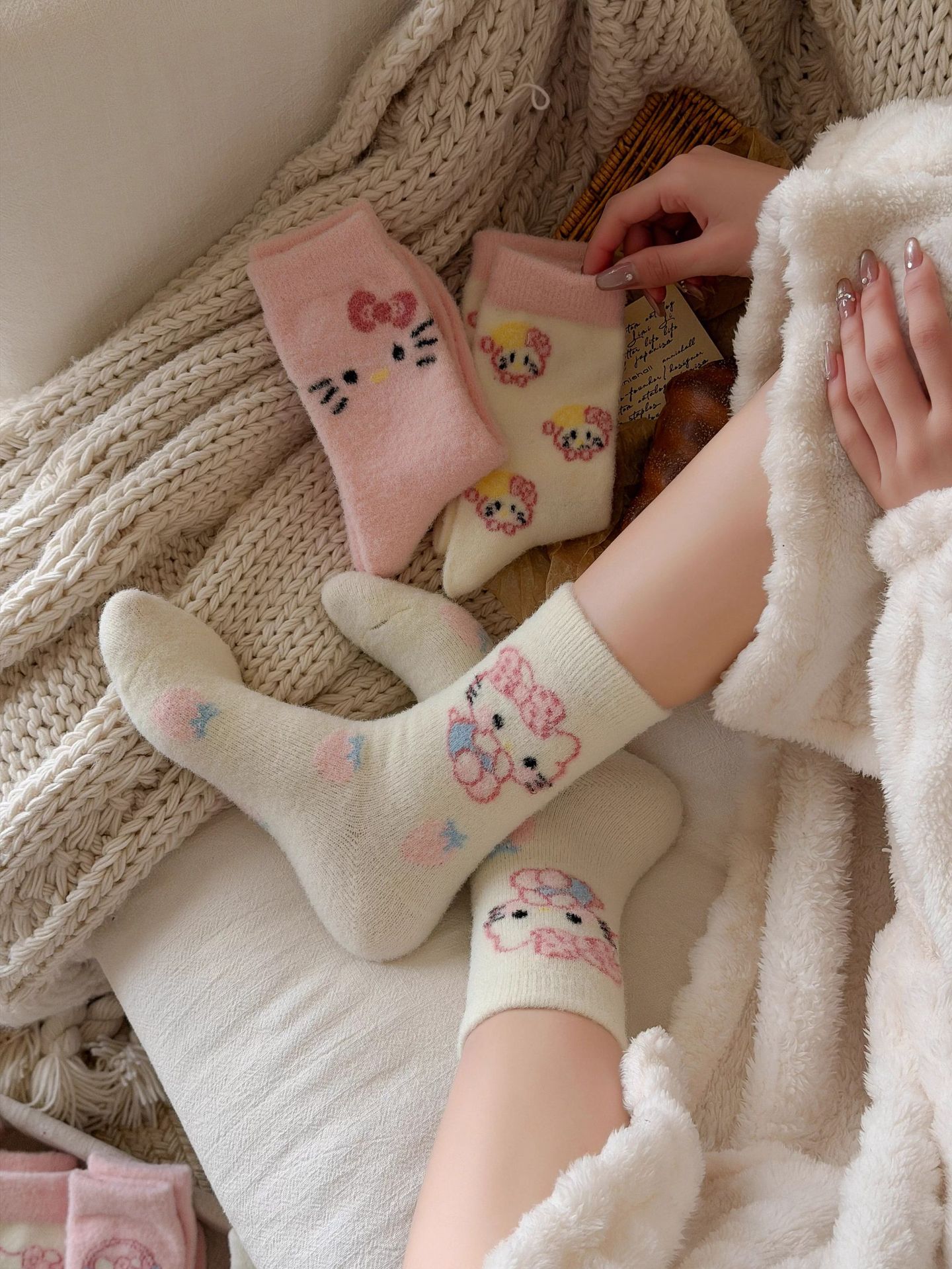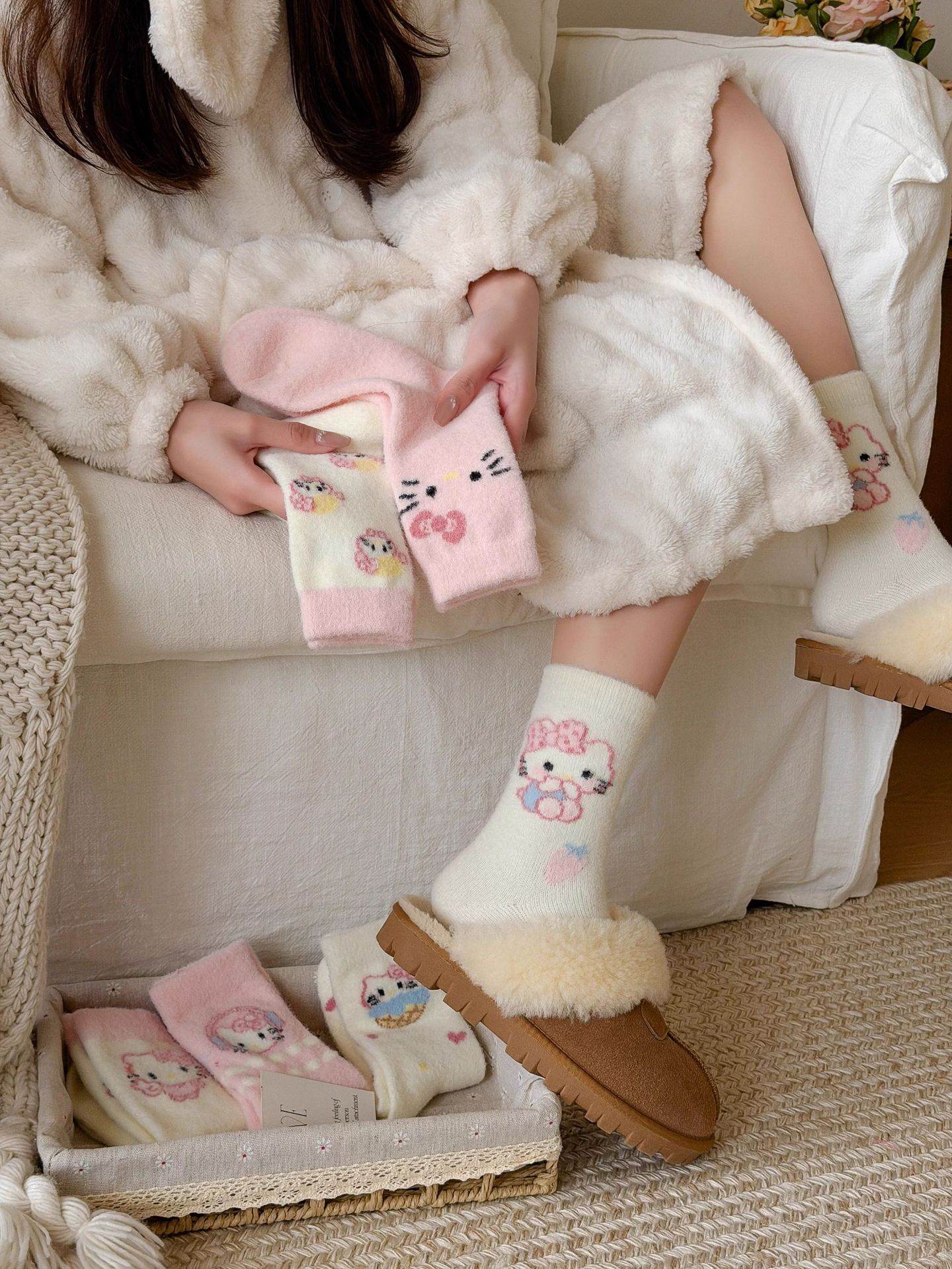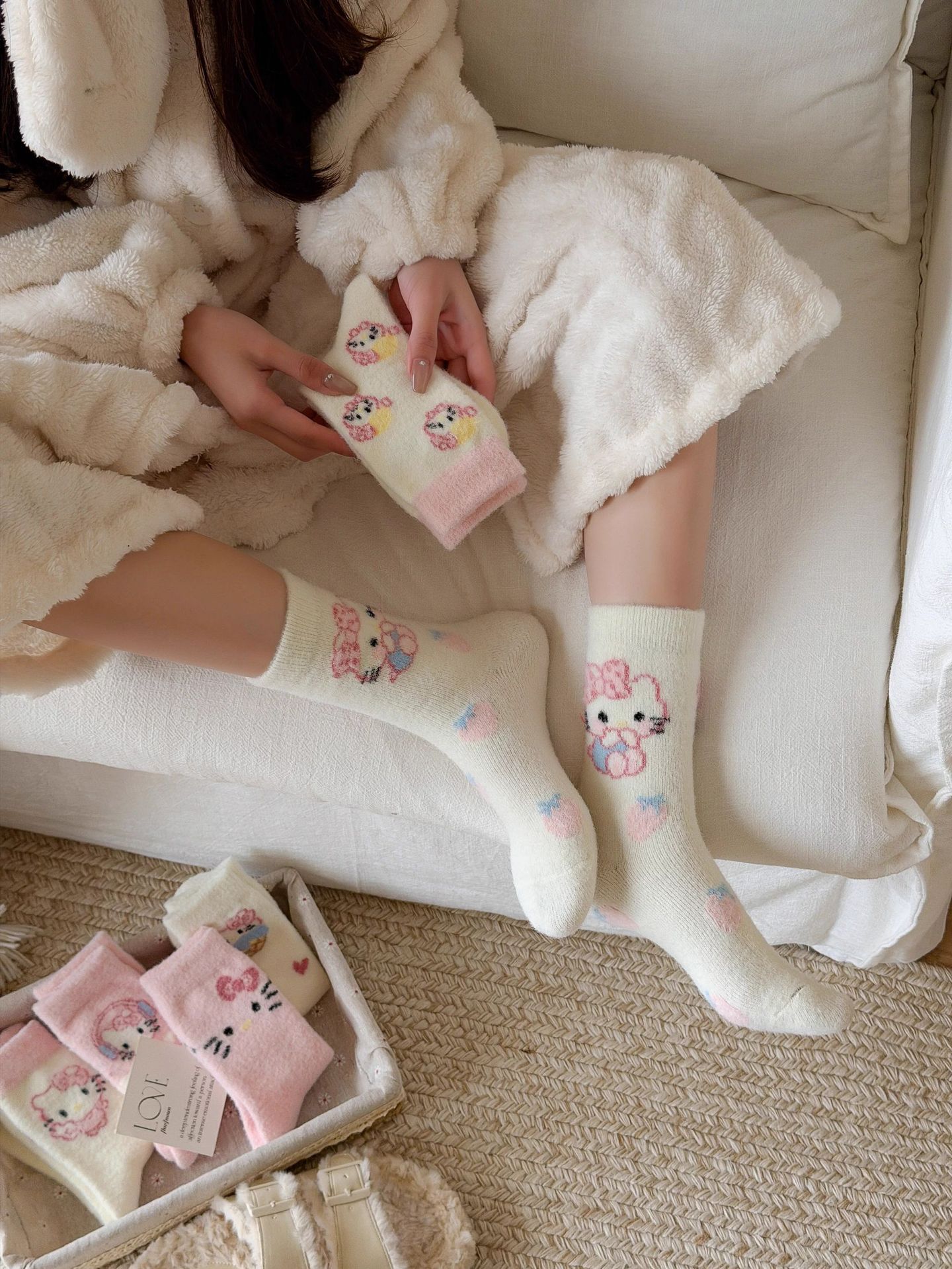 autumn and winter thick warm home floor socks plush cute girl sleeping socks cartoon pink tube socks children