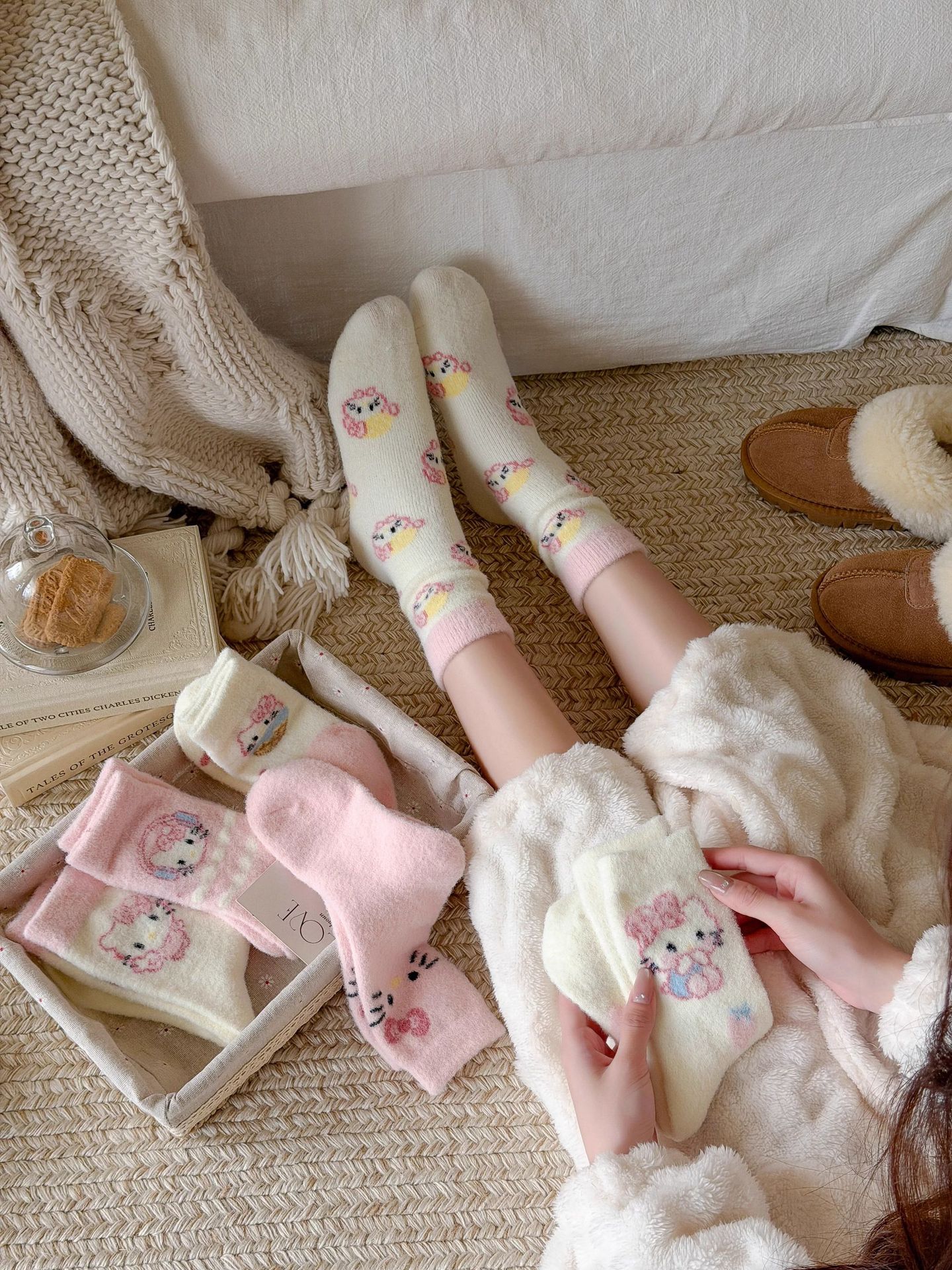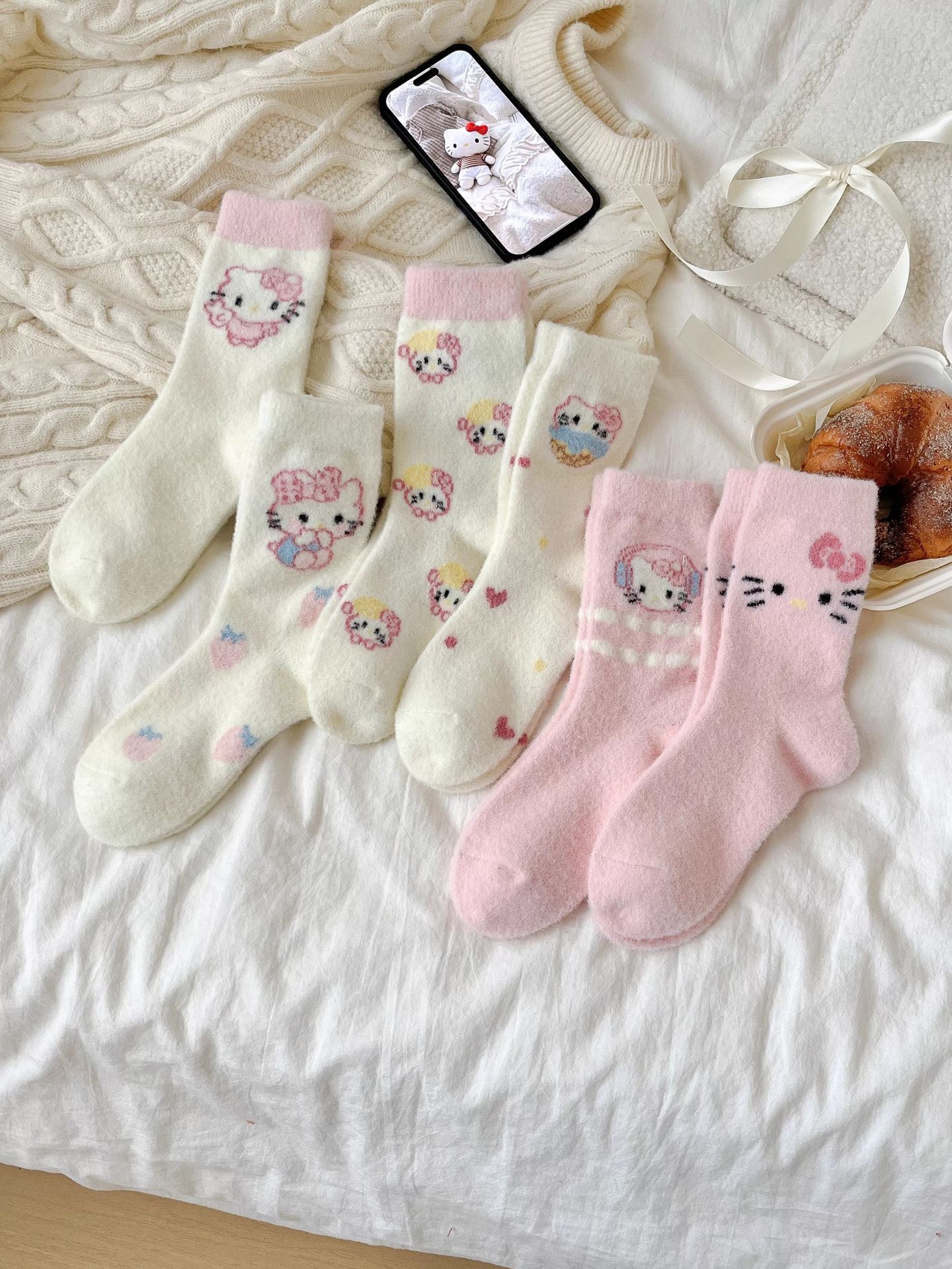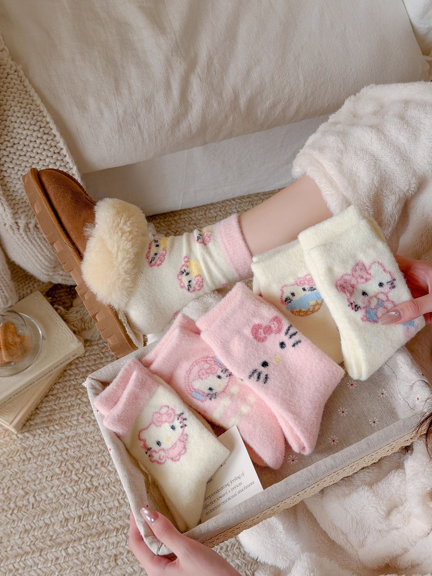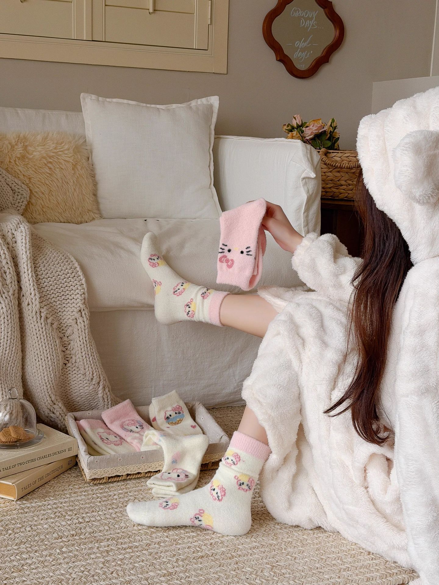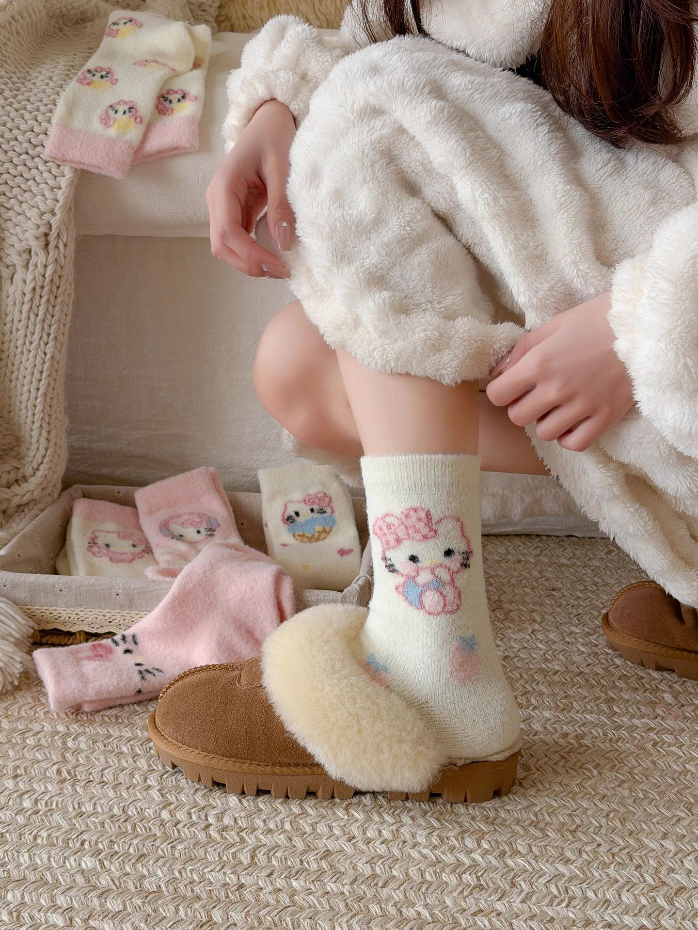 autumn and winter thick warm home floor socks plush cute girl sleeping socks cartoon pink tube socks children
