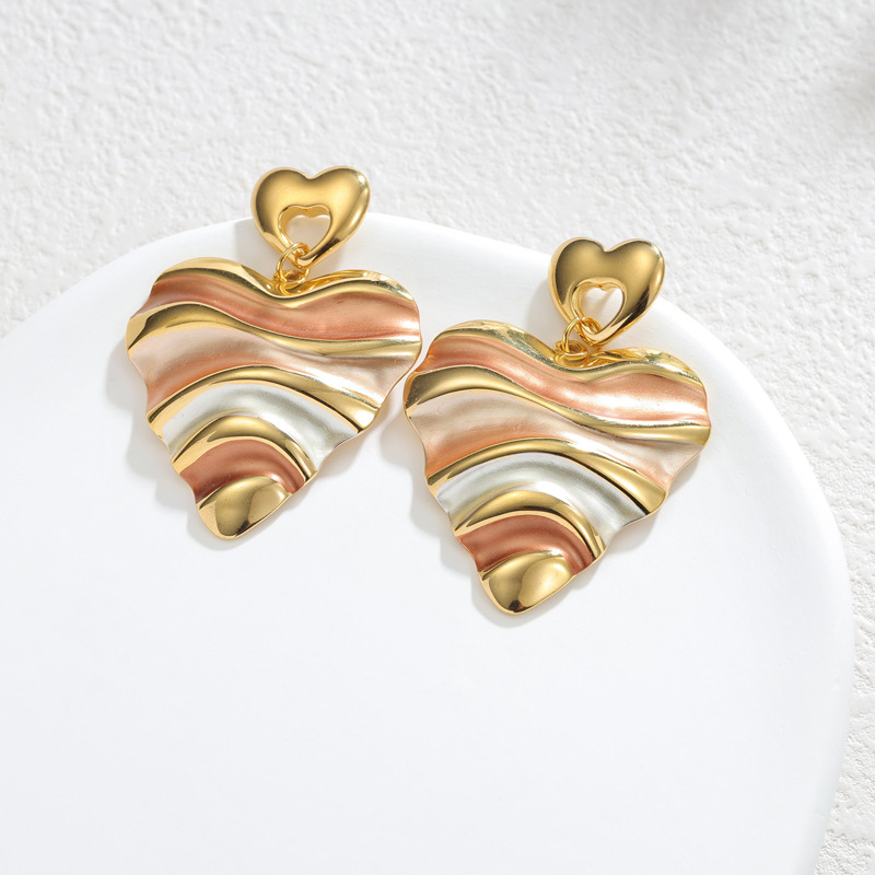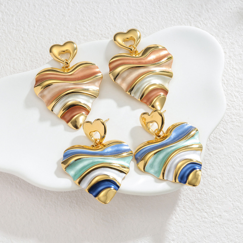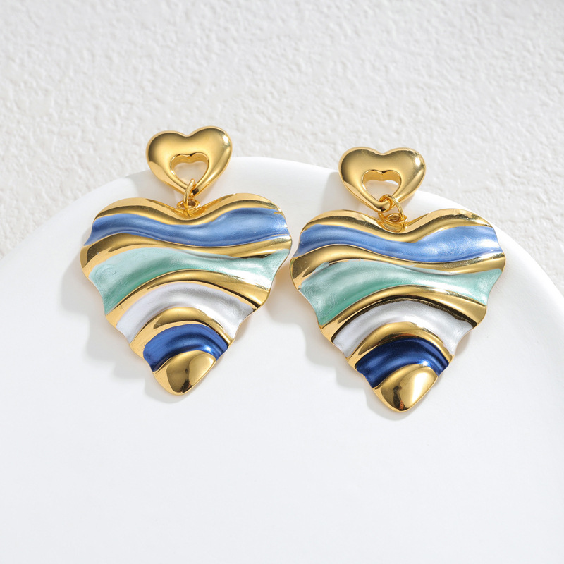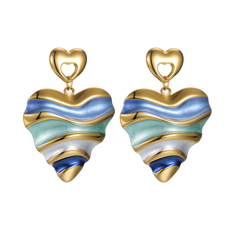 Western European style stainless steel colored drop oil heart earrings, retro and unique design, 18k gold earrings, high-end for autumn and winter.