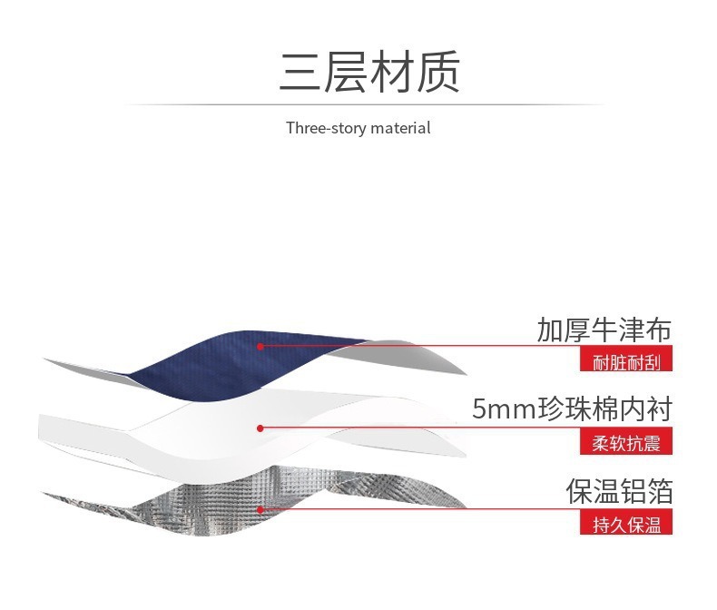 Product material: Oxford cloth + pearl cotton + aluminum foil