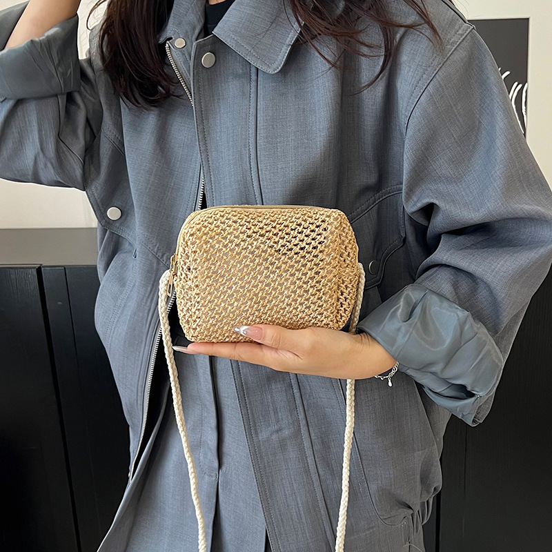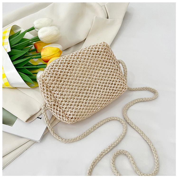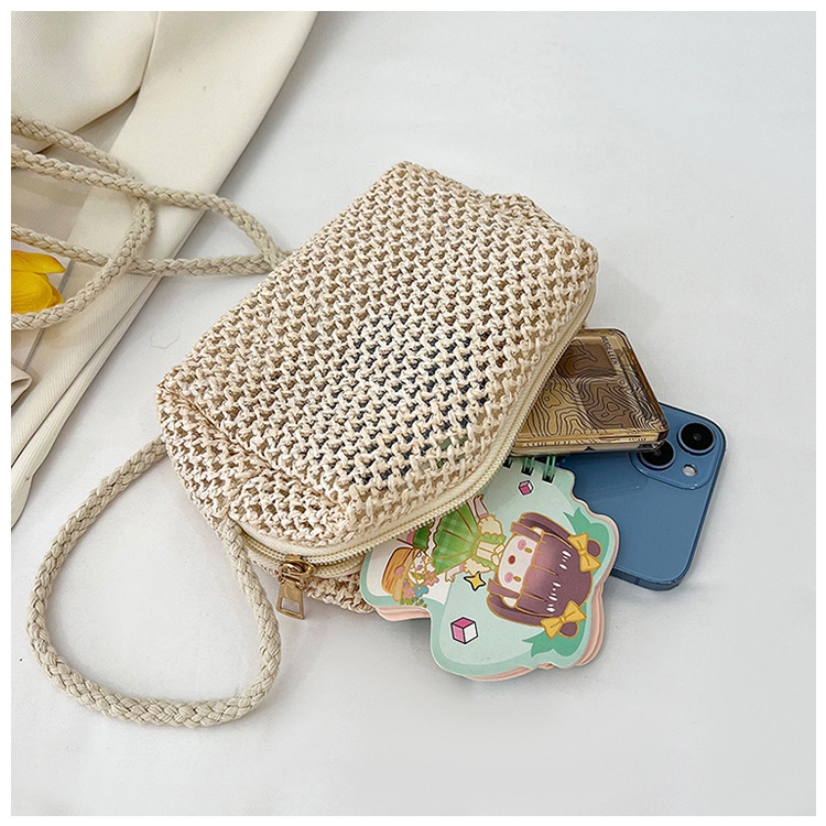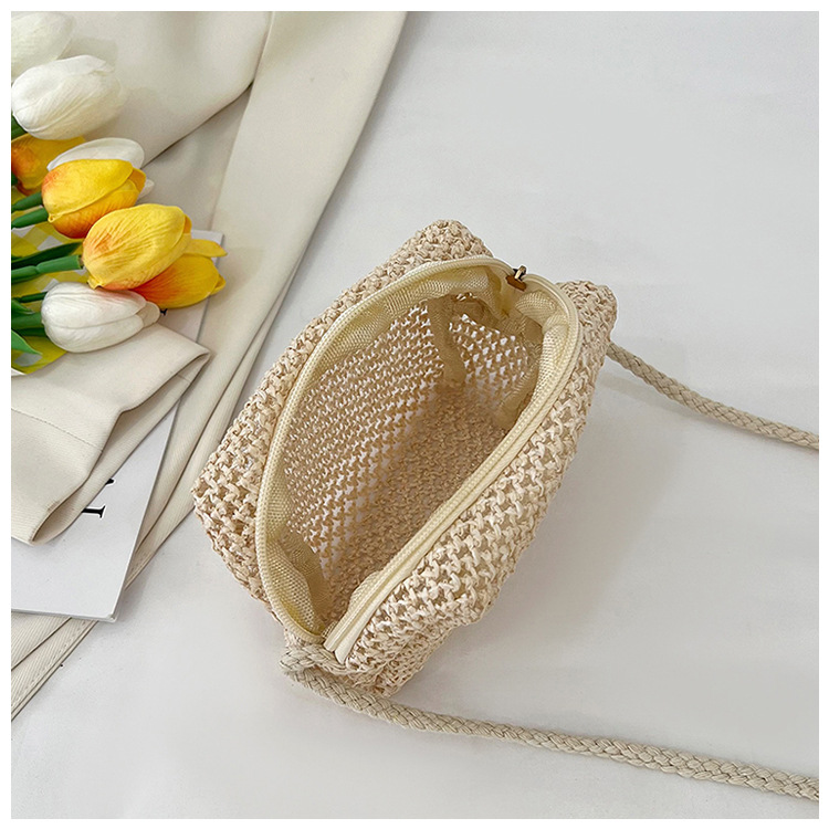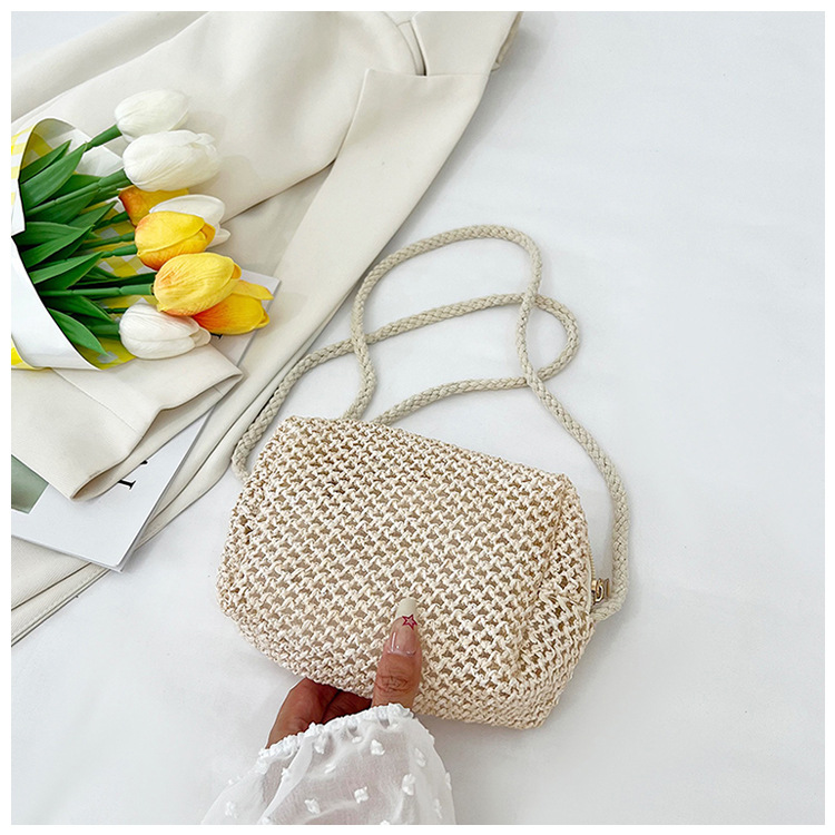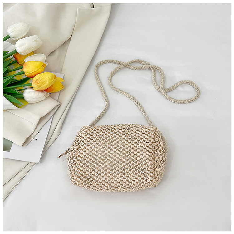 new cheap hollow crocheted woven bag small bag solid color lightweight straw bag summer all-match crossbody small bag