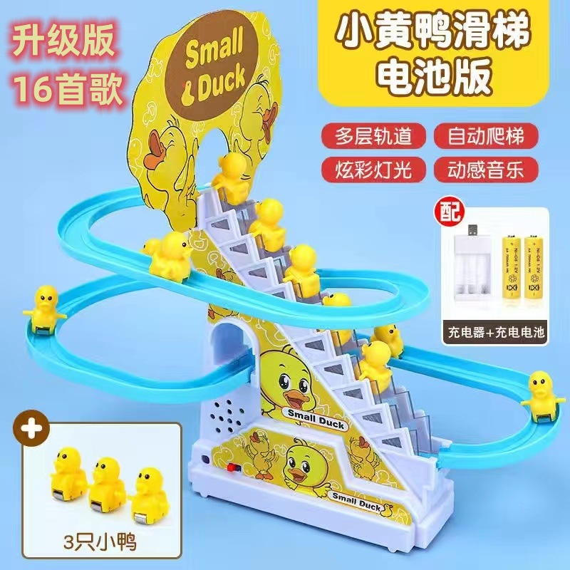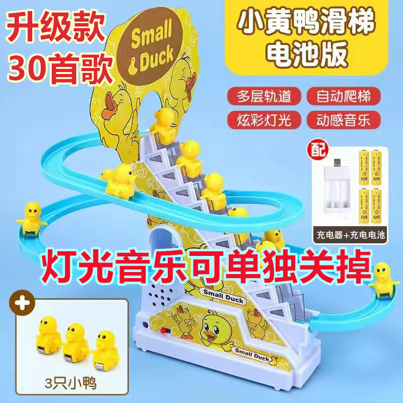 top-spec version with 30 songs, small yellow duck sliding slide, rechargeable [3 ducks], 2 rechargeable batteries +1 battery charger