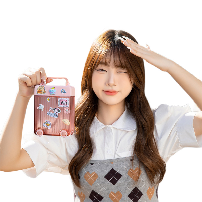 fun cup luggage 3d 3d sticker straw plastic cup children student suitcase water bottle gift 450m