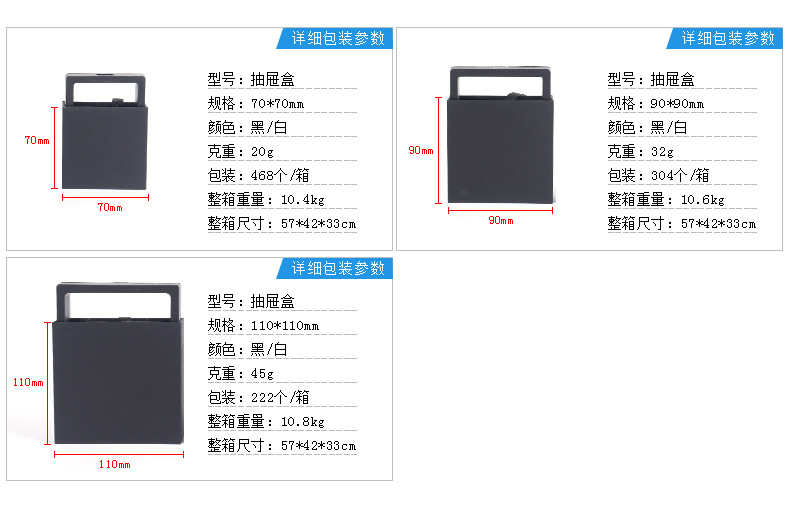 black suspension box + plastic drawer box; 70*70 * 20mm
