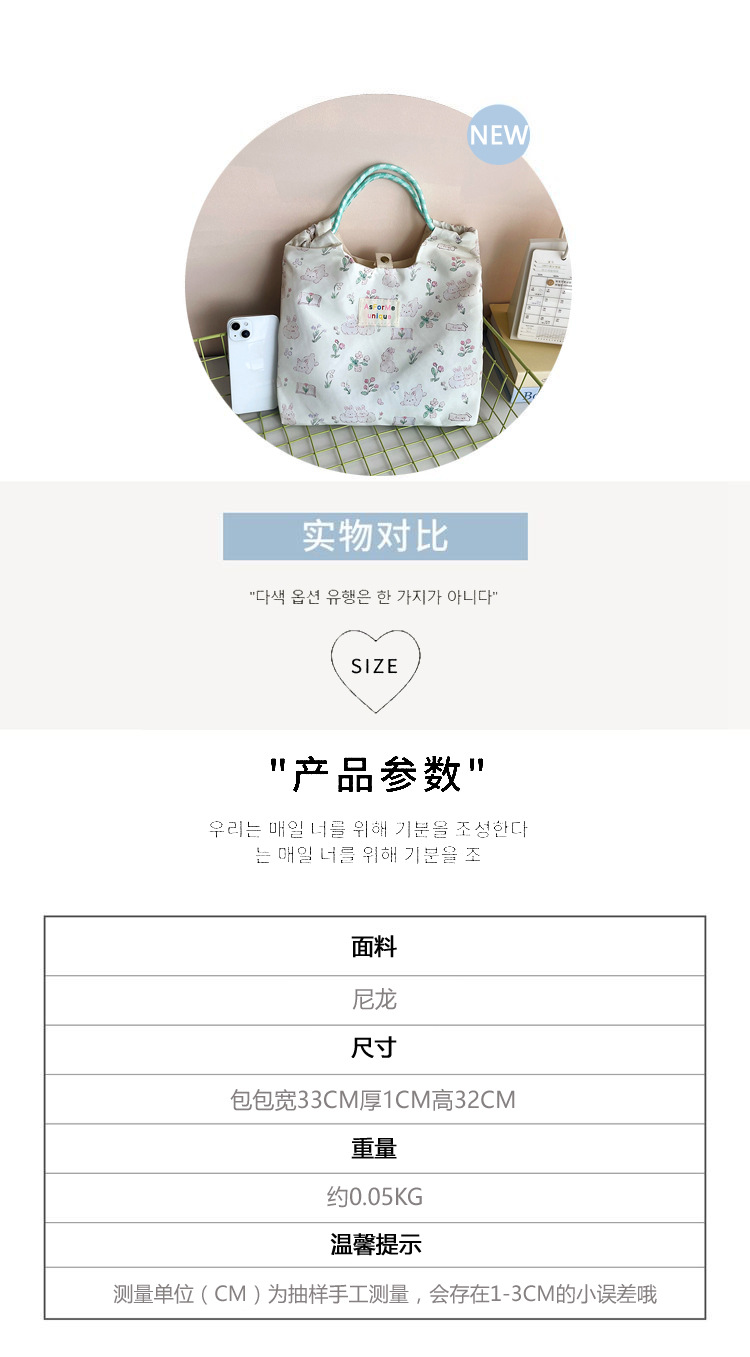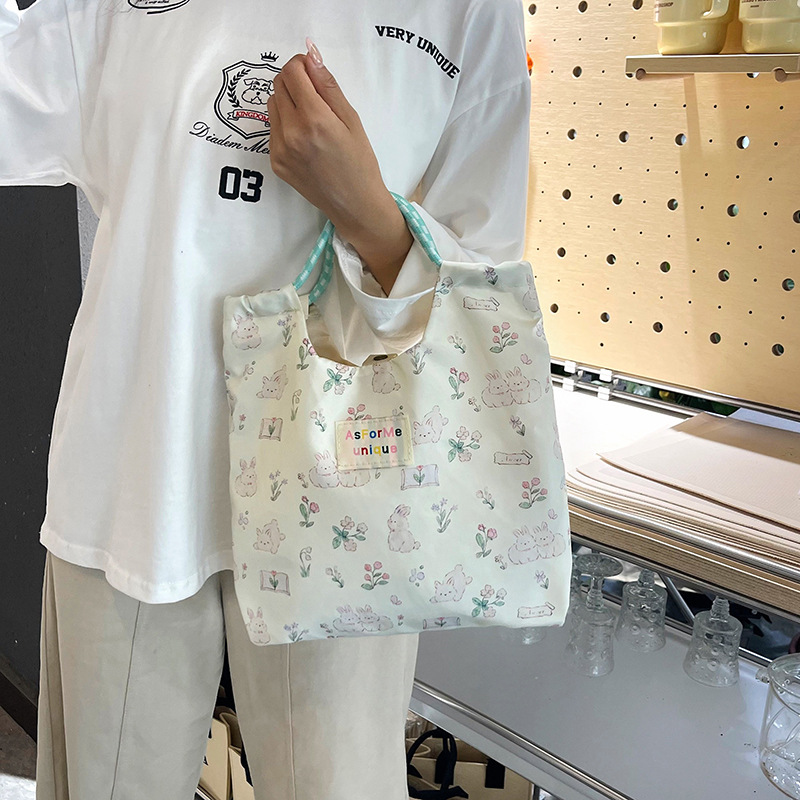 korean embossed women's bag cartoon canvas bag women's large capacity hand holding tote shopping for work commuter bag wholesale