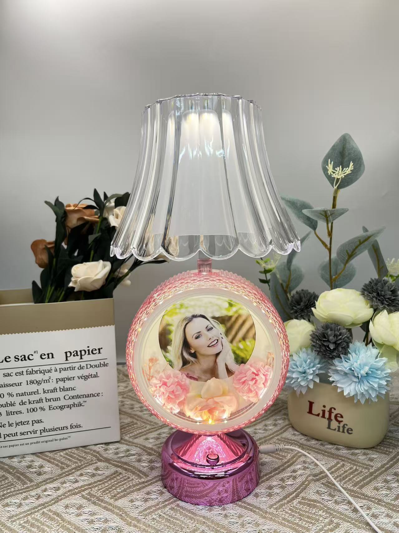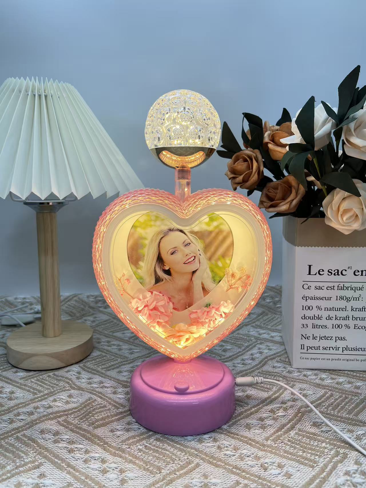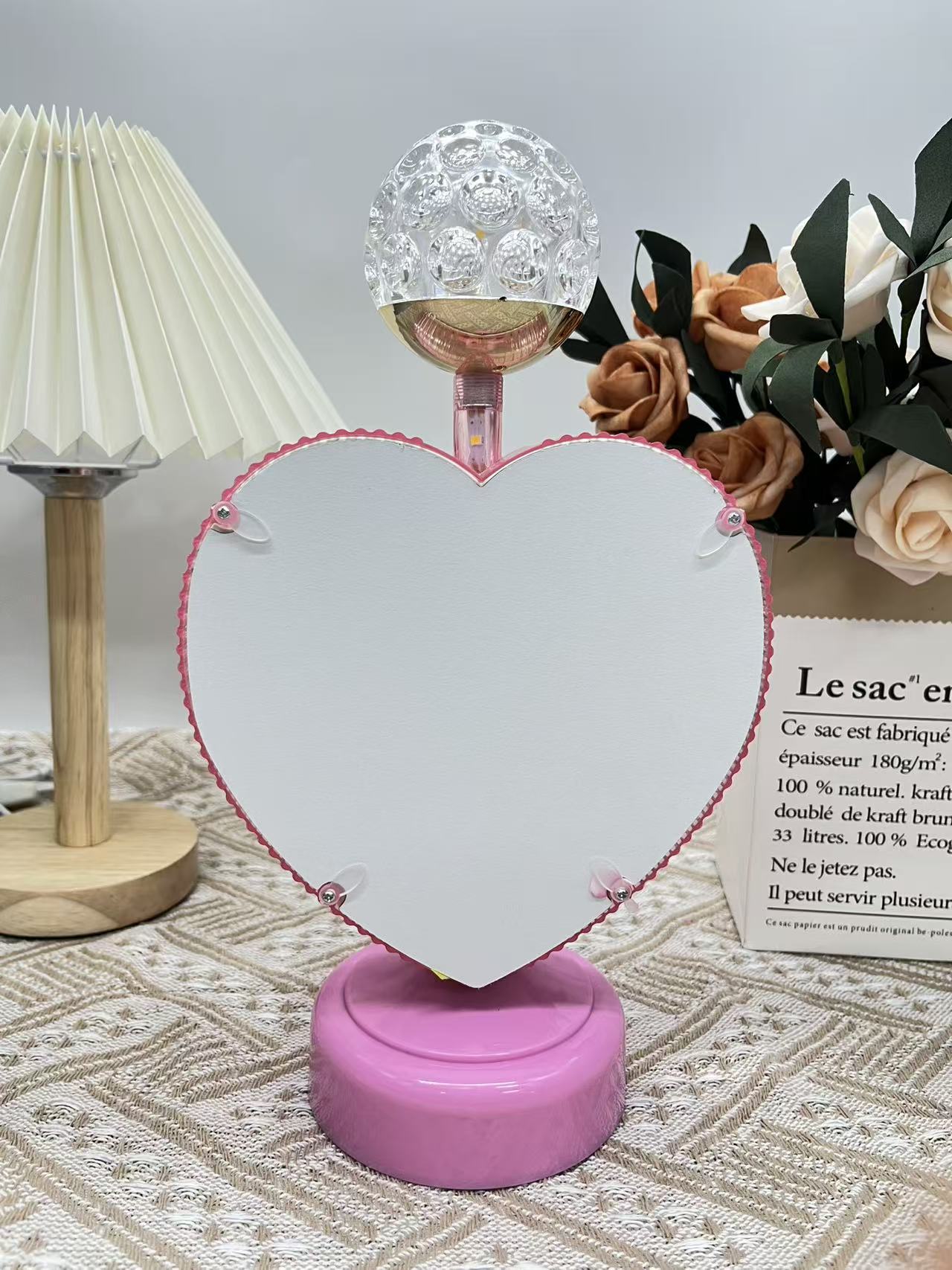 round lamp heart-shaped pink