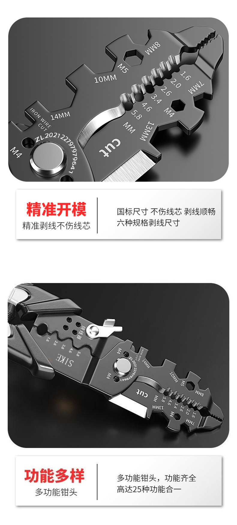 25-in-one electrician wire stripper (with split line),100/piece, 0.25kg