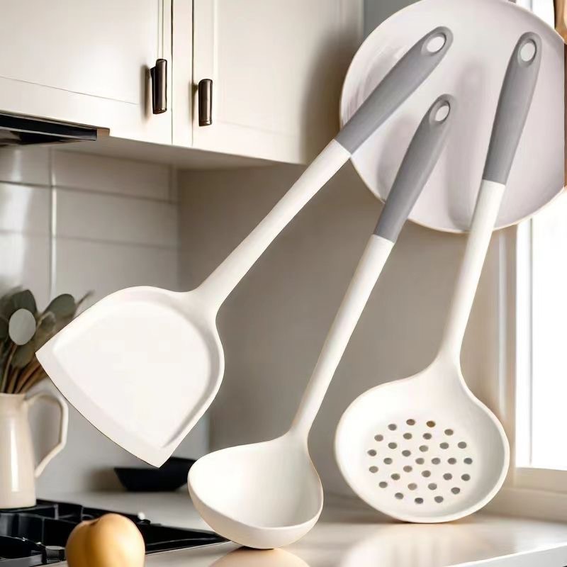 white and gray silicone spoon