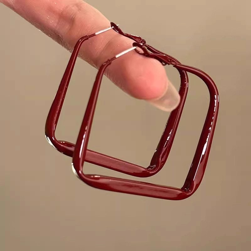 30# wine red heart-shaped earrings-.