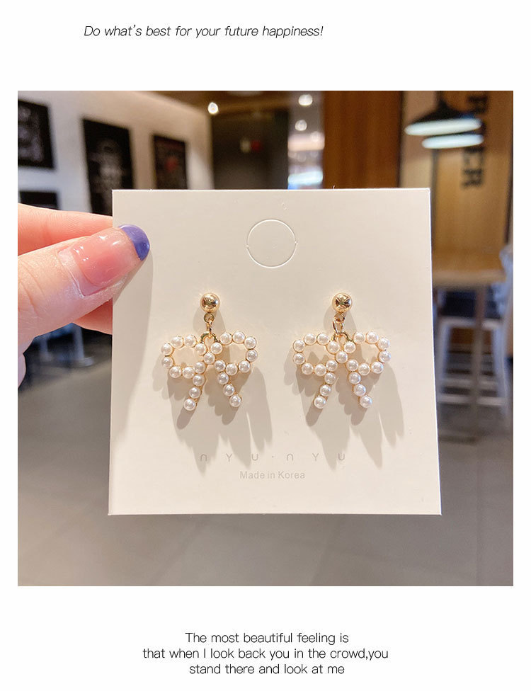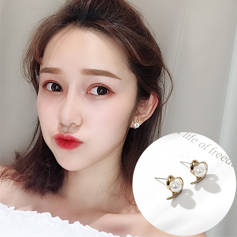 148# irregular hollow-out love pearl earrings-.