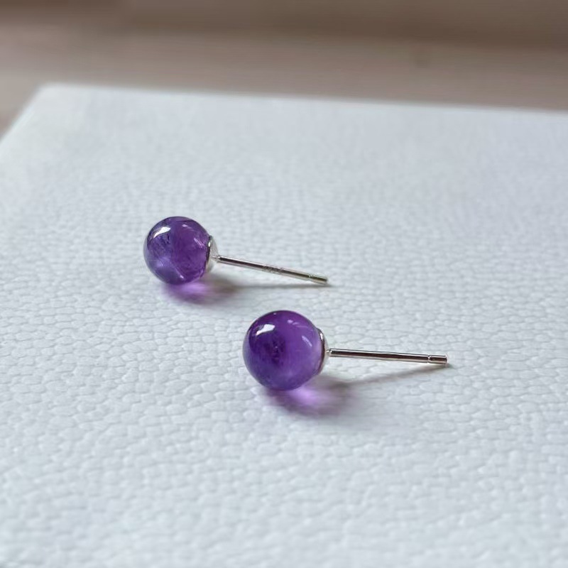 k24 [8mm natural amethyst] silver stud earrings