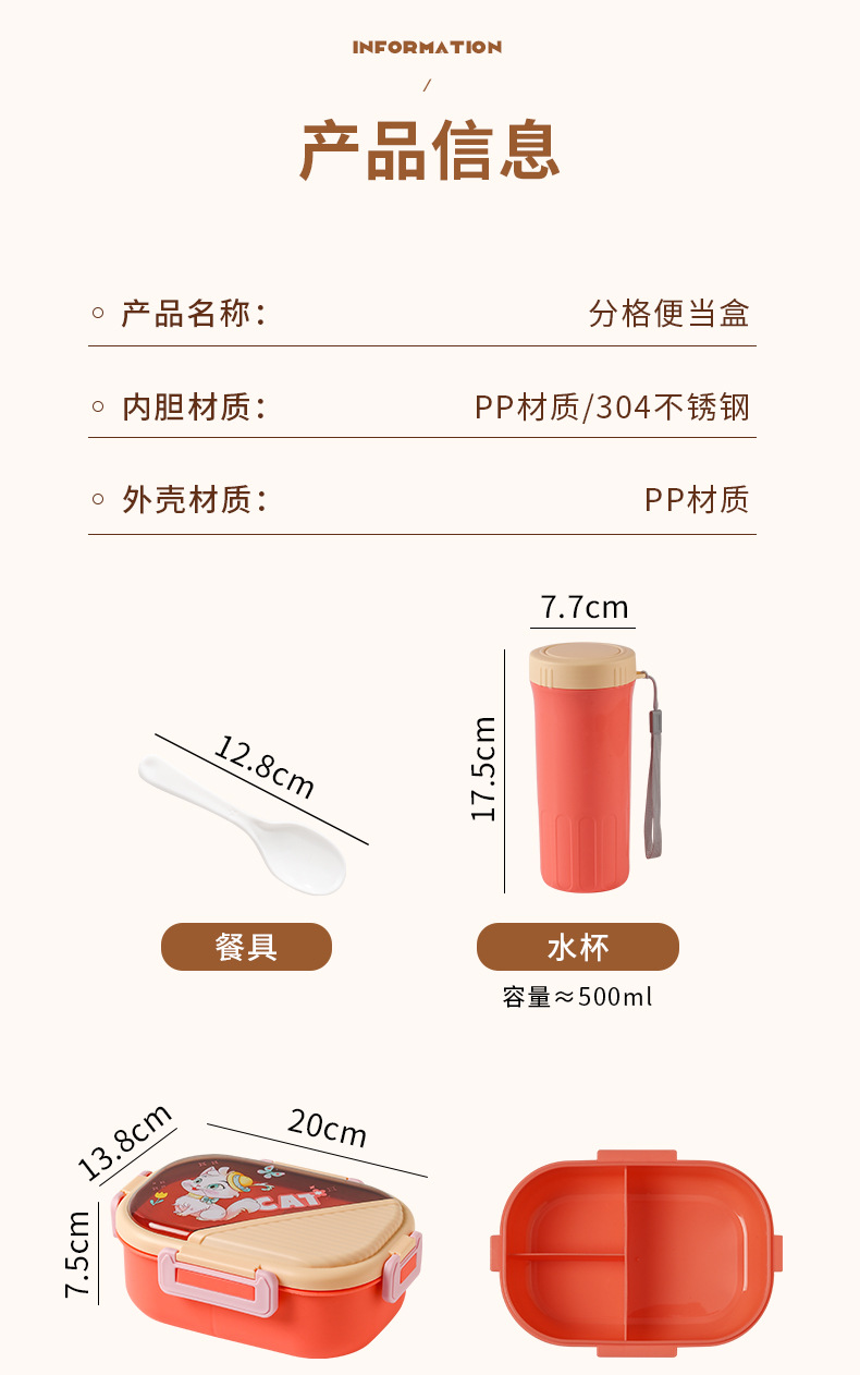 pp lunch box + cup set 304 stainless steel set [note color]]