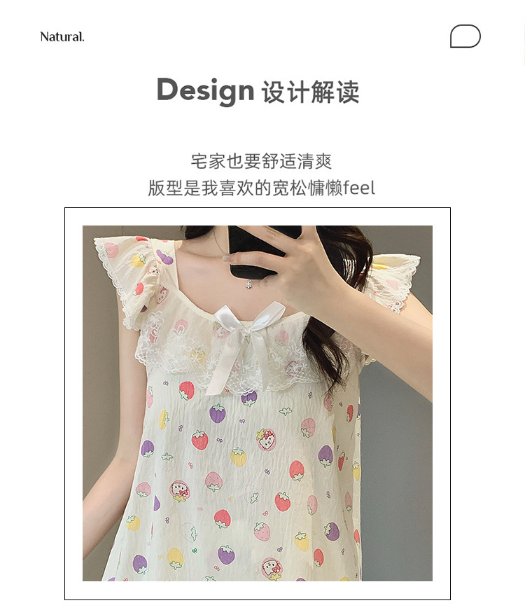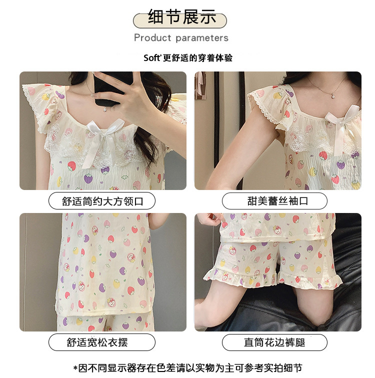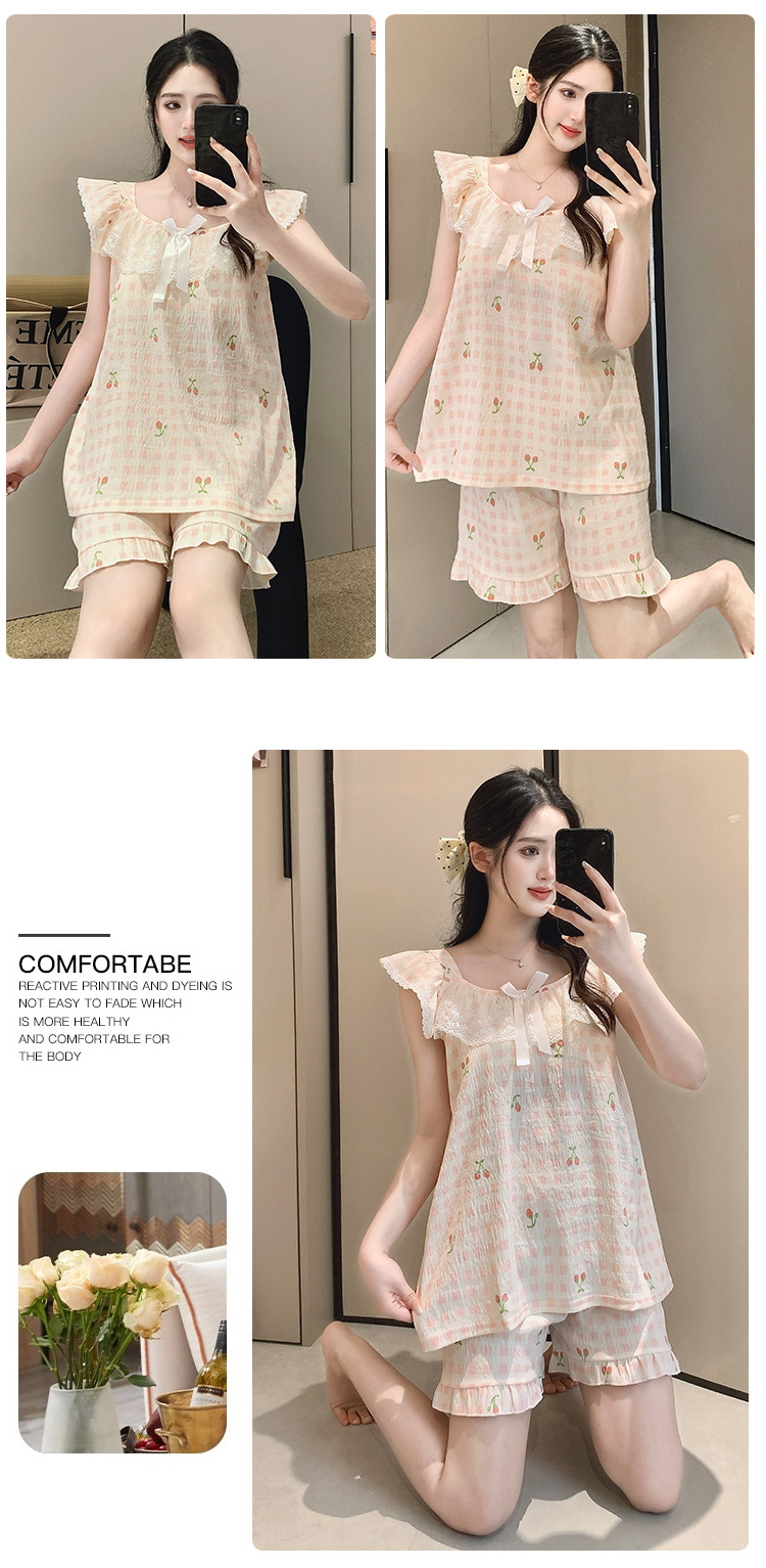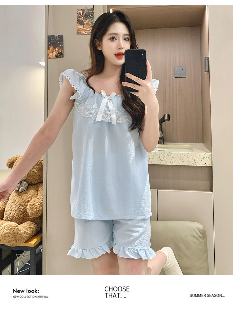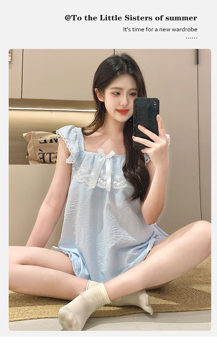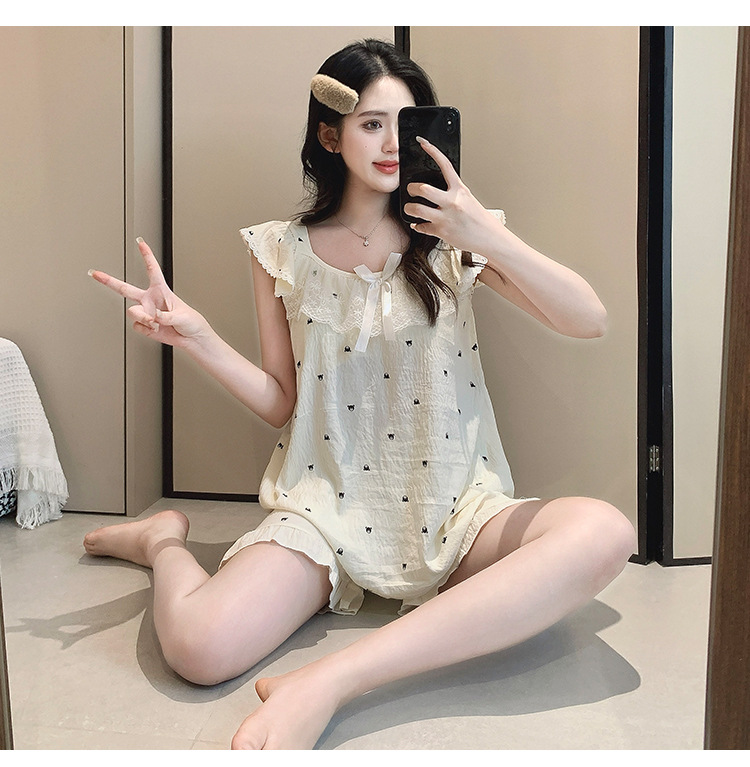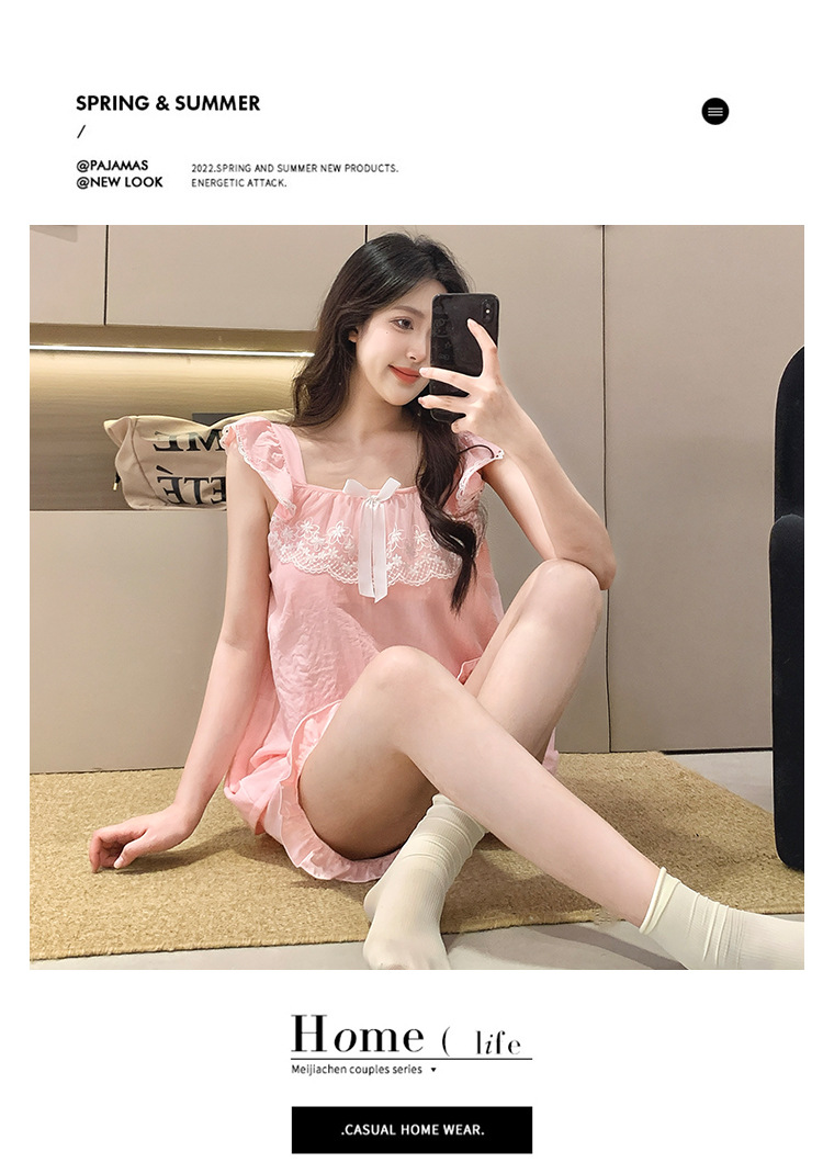 2026 summer new cloud cotton pajamas women's cute sweet lace girl sleeveless homewear suit with chest pad
