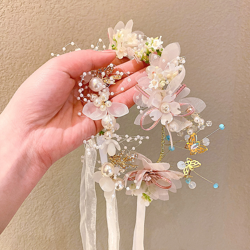 (6# pink flower pearl headband)