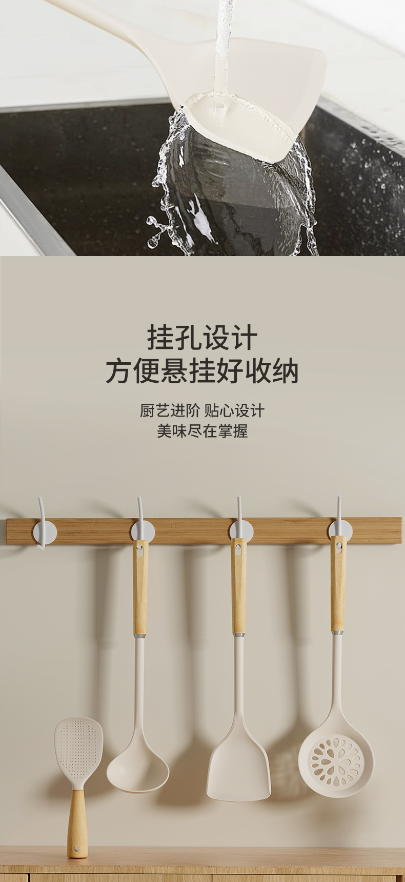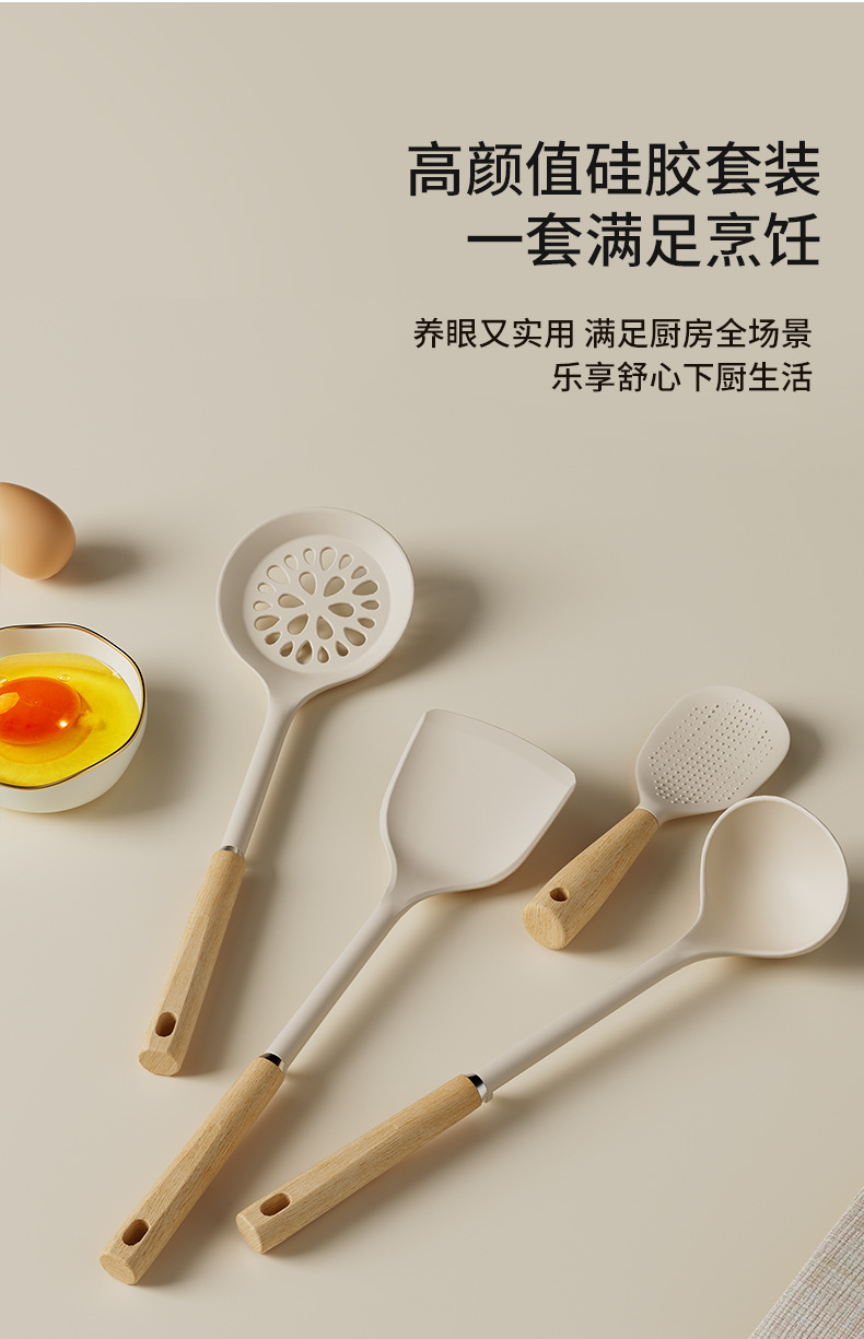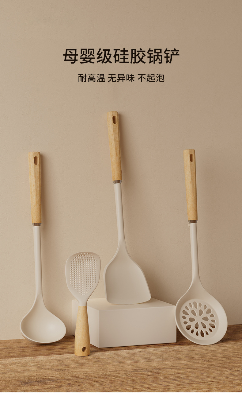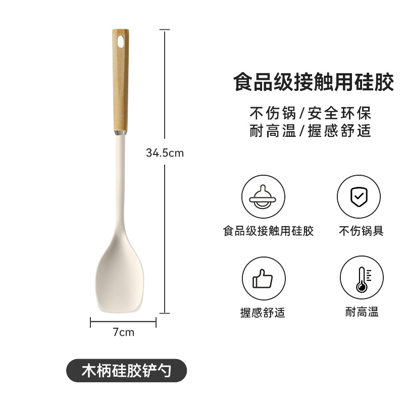 wooden-handled silicone shovel spoon