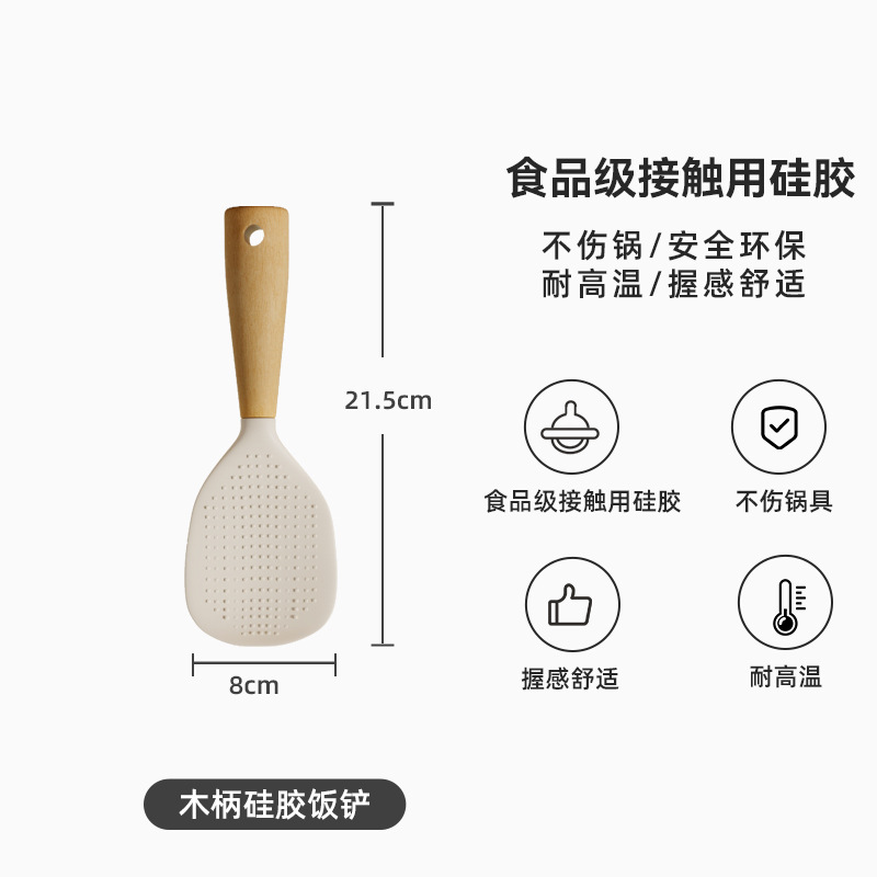 wooden-handled silicone rice spoon