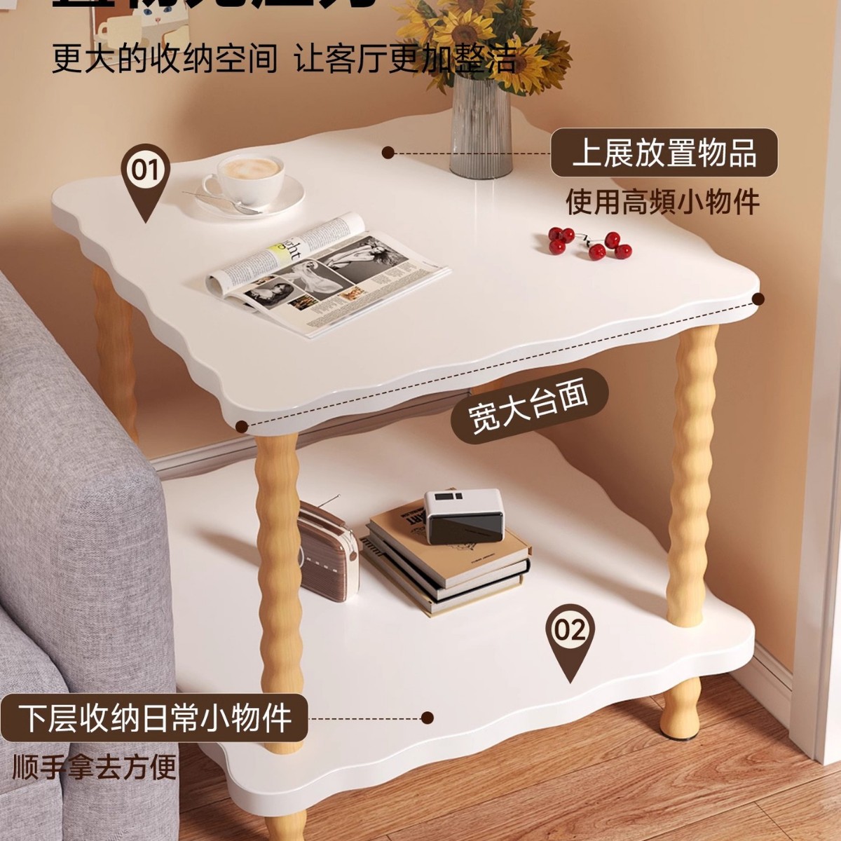 wave square table 50*50/white