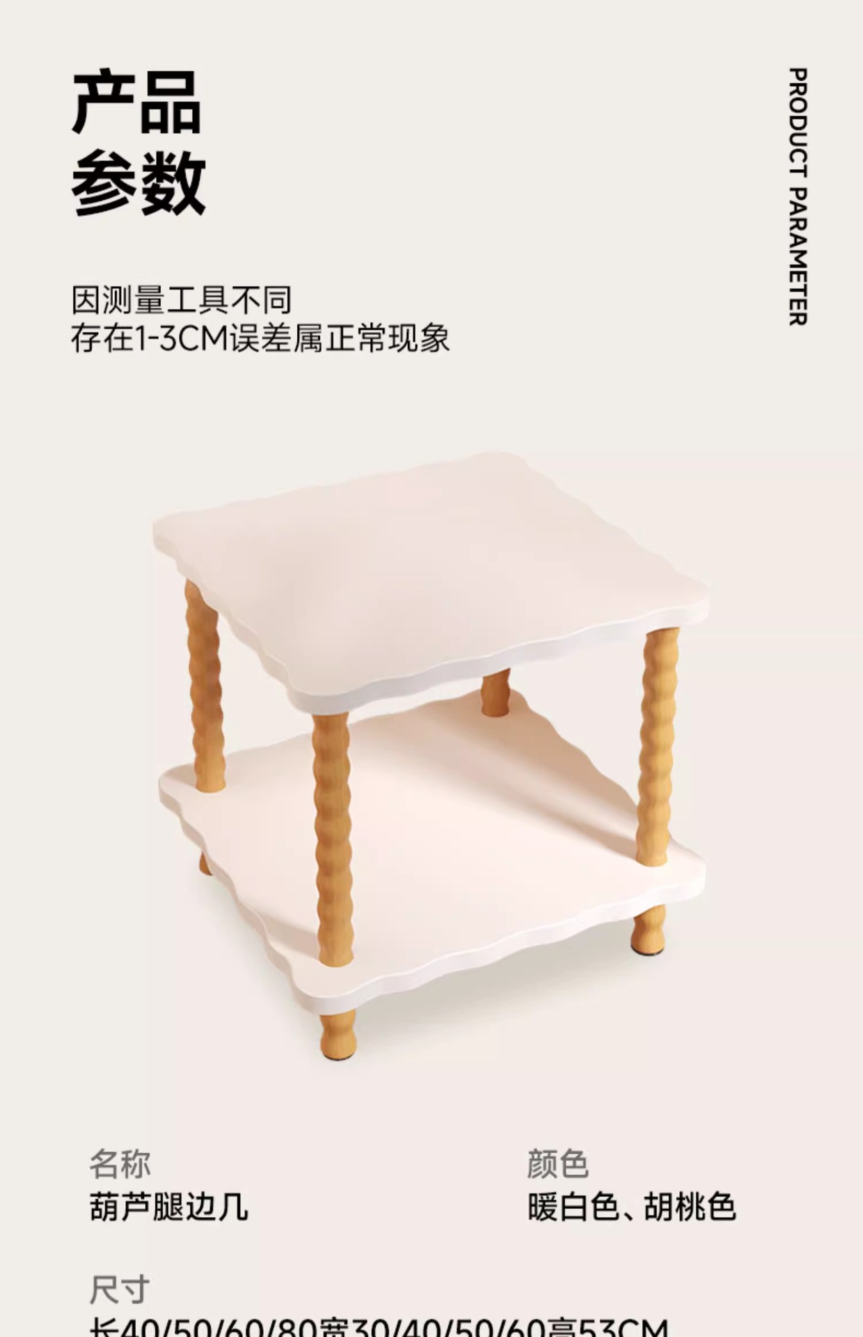 wave square table 50*50/light walnut color