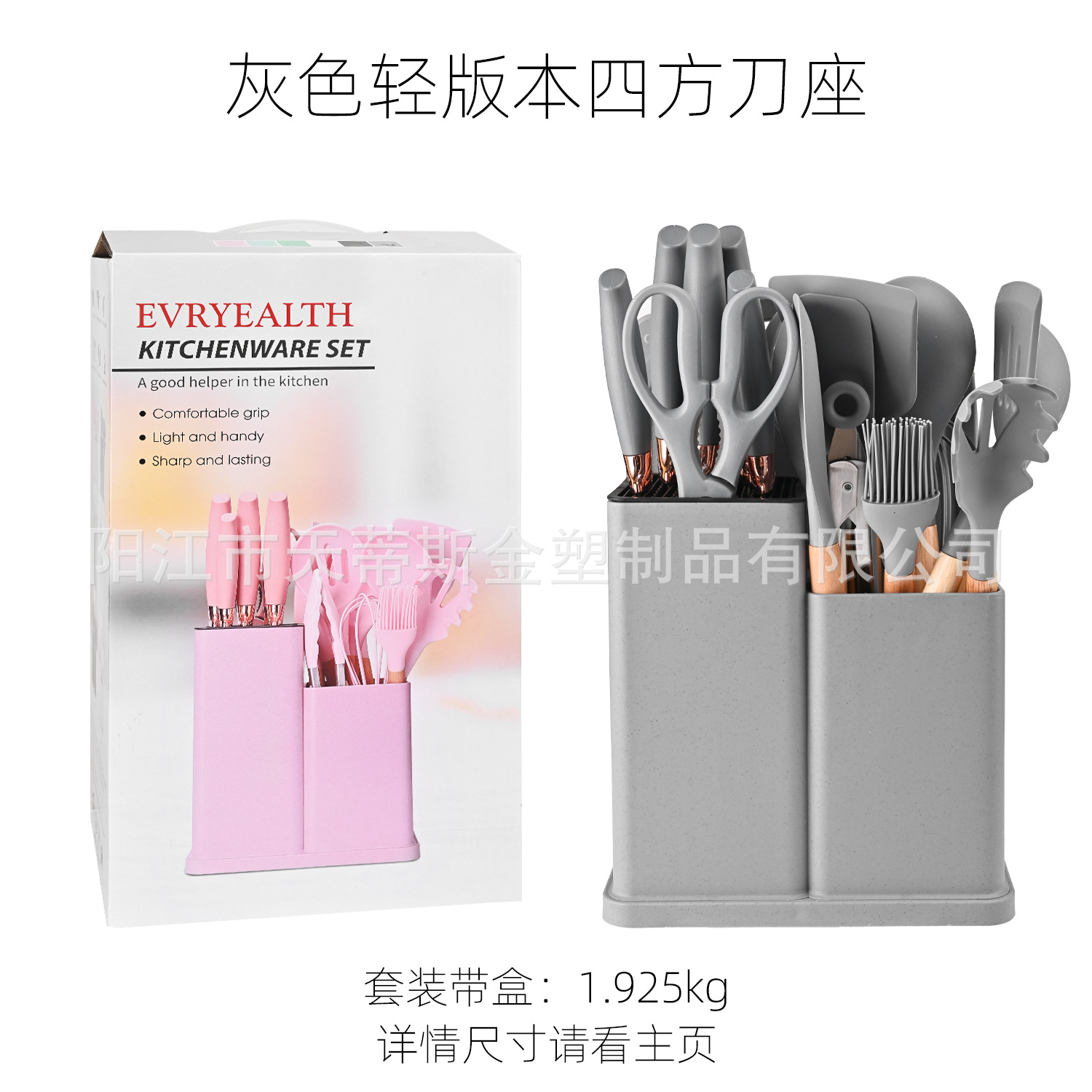 2000g heavy edition kitchenware 19-piece set square bucket-gray