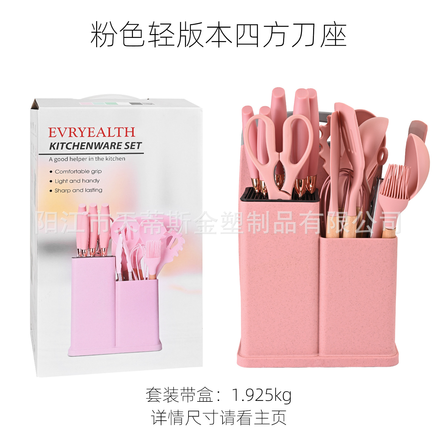 2000g heavy edition kitchenware 19-piece set square bucket-pink