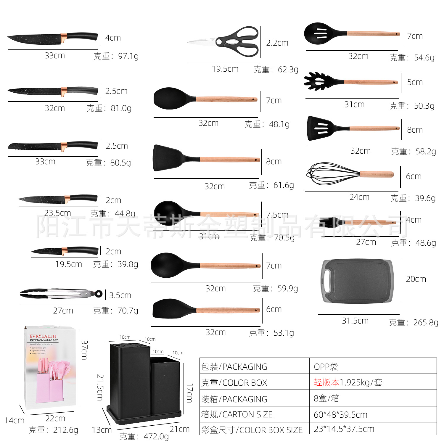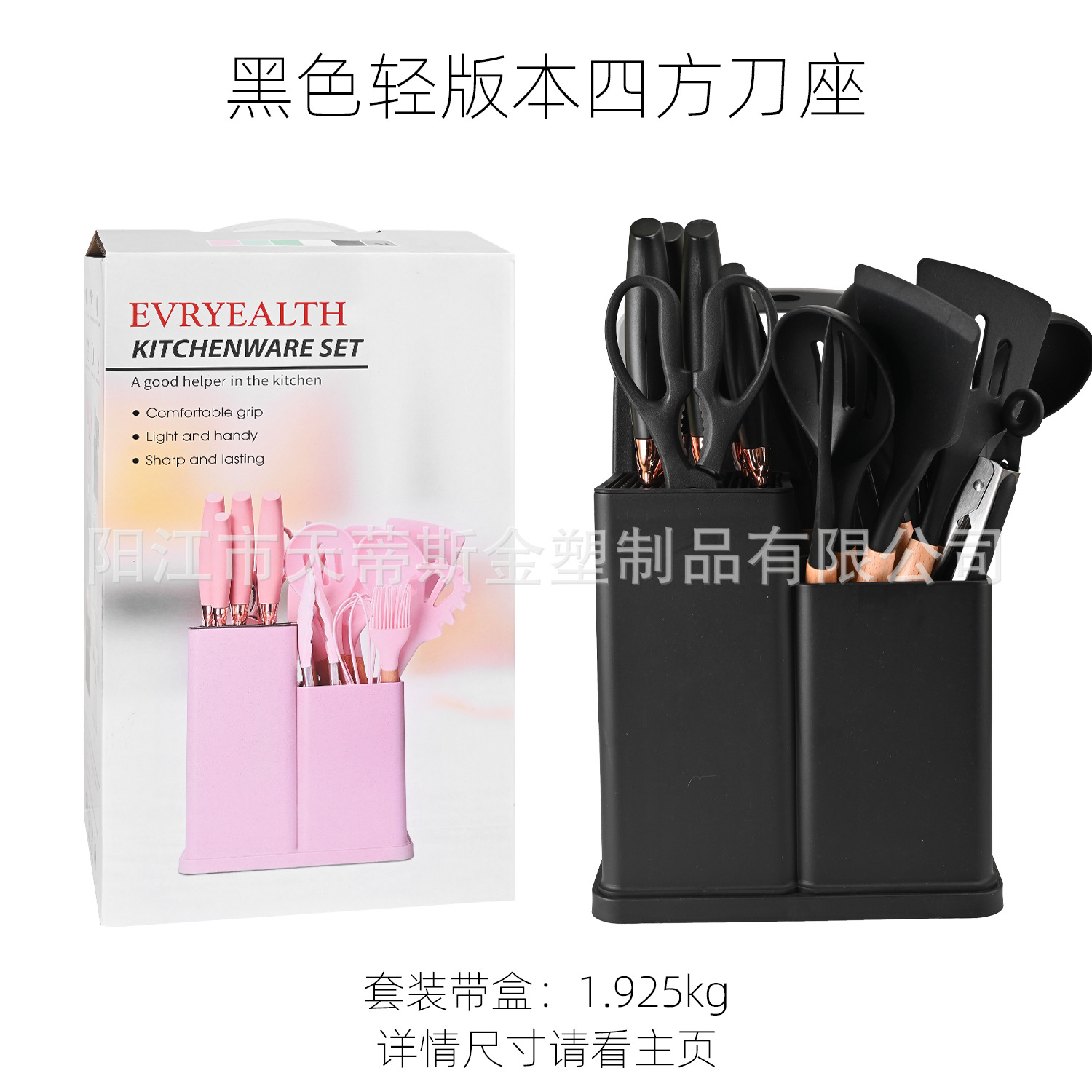 2000g heavy edition kitchenware 19-piece set square bucket-black